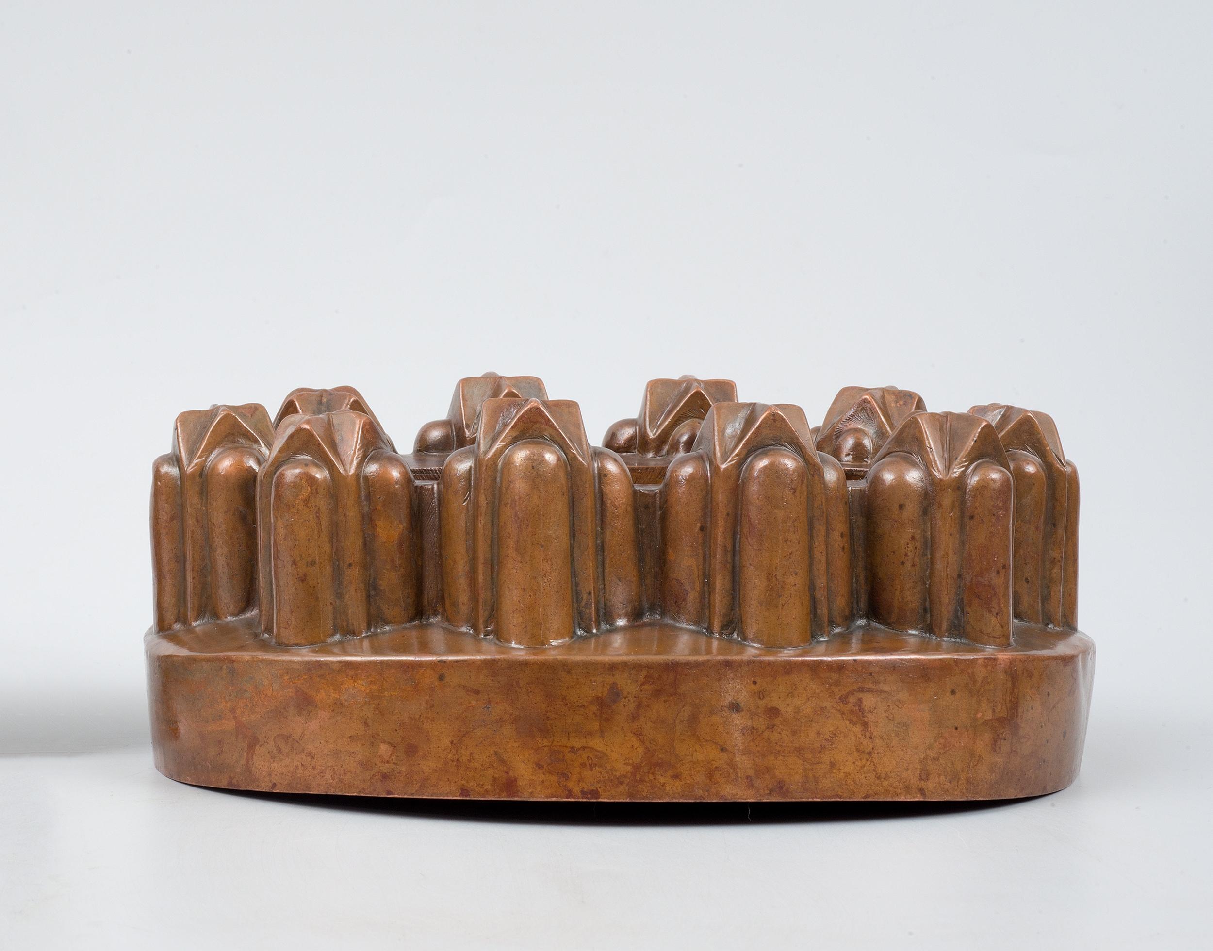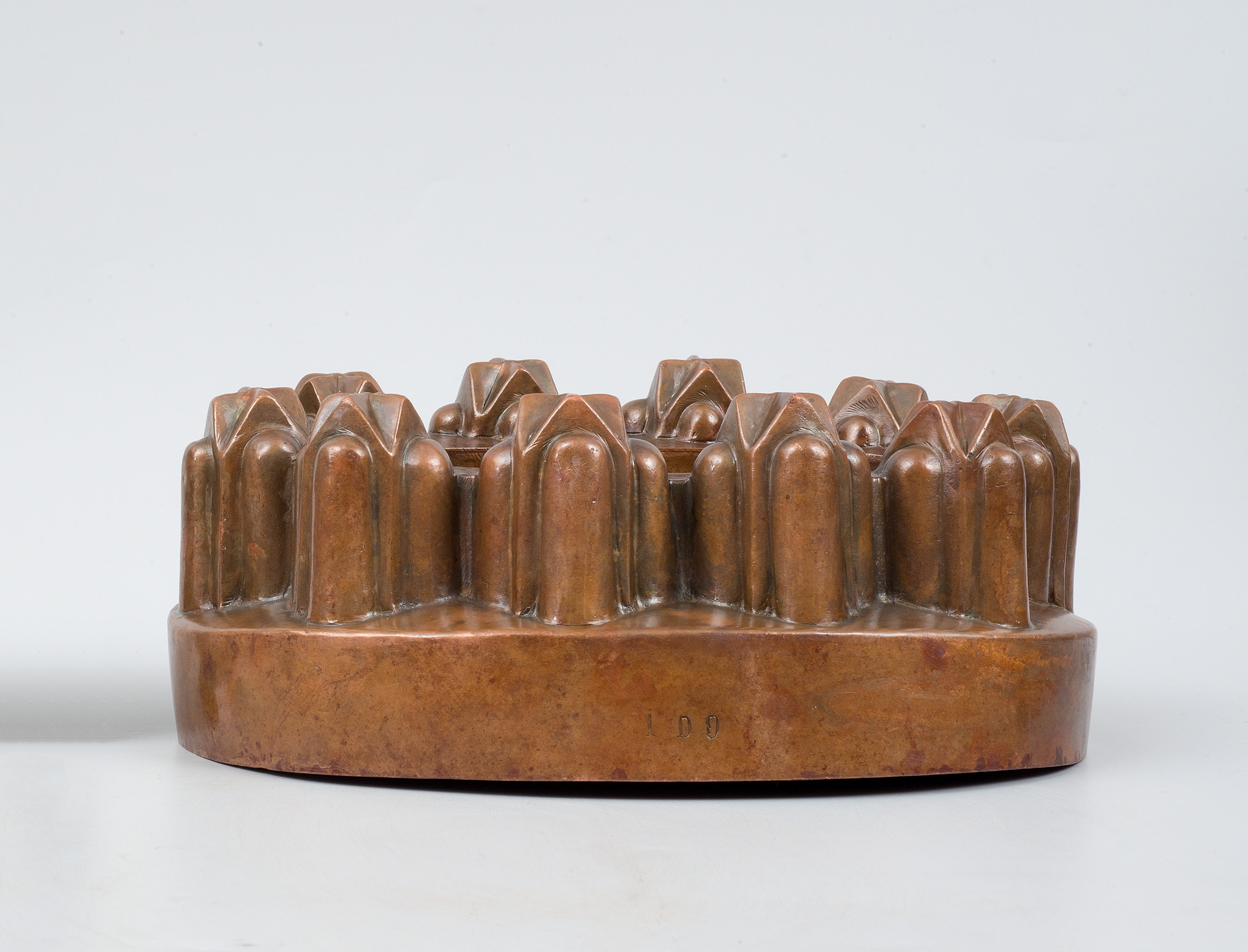 W XIX wieku formy do galarety i wypieków stanowiły nie tylko narzędzia codziennego użytku, lecz także świadectwa kultury kulinarnej i materialnej epoki. Wykonywane głównie z miedzi lub cyny, odznaczały się wysoką jakością wykonania oraz bogactwem kształtów i detali dekoracyjnych, które odzwierciedlały zarówno funkcję użytkową, jak i estetyczne ambicje właścicieli. Służyły do przyrządzania wyrafinowanych dań — od żelatynowych deserów i wytrawnych aspików po efektowne ciasta i pasztety — których forma była integralną częścią kulinarnego przekazu. Obecność sygnatur, numerów modeli czy znaków warsztatowych świadczy o ich produkcji w renomowanych pracowniach rzemieślniczych, często działających na potrzeby bogatego mieszczaństwa i arystokracji. Dziś stanowią cenne źródło badań nad historią kuchni, obyczajowością stołu oraz rozwojem technologii wytwórczych.