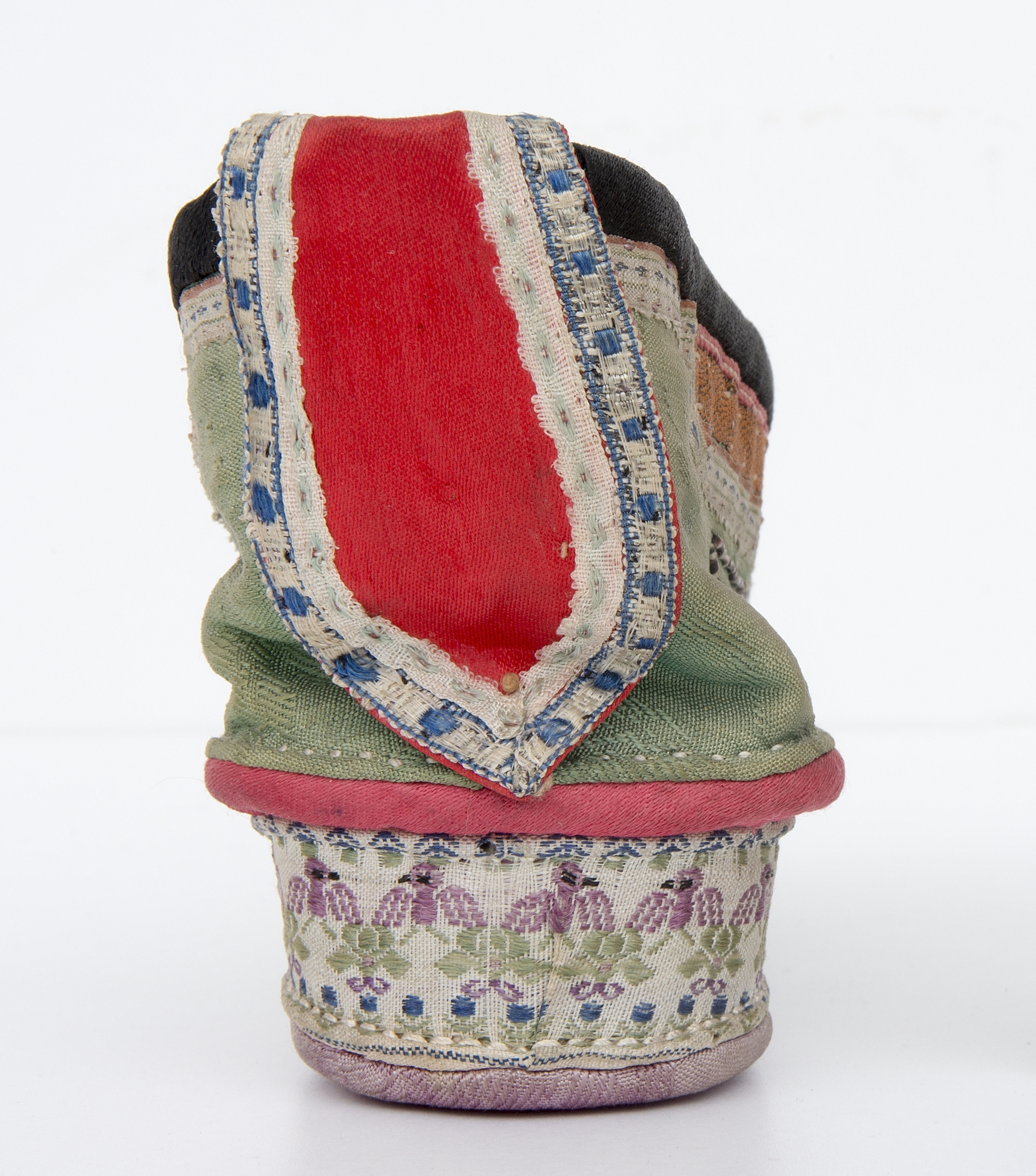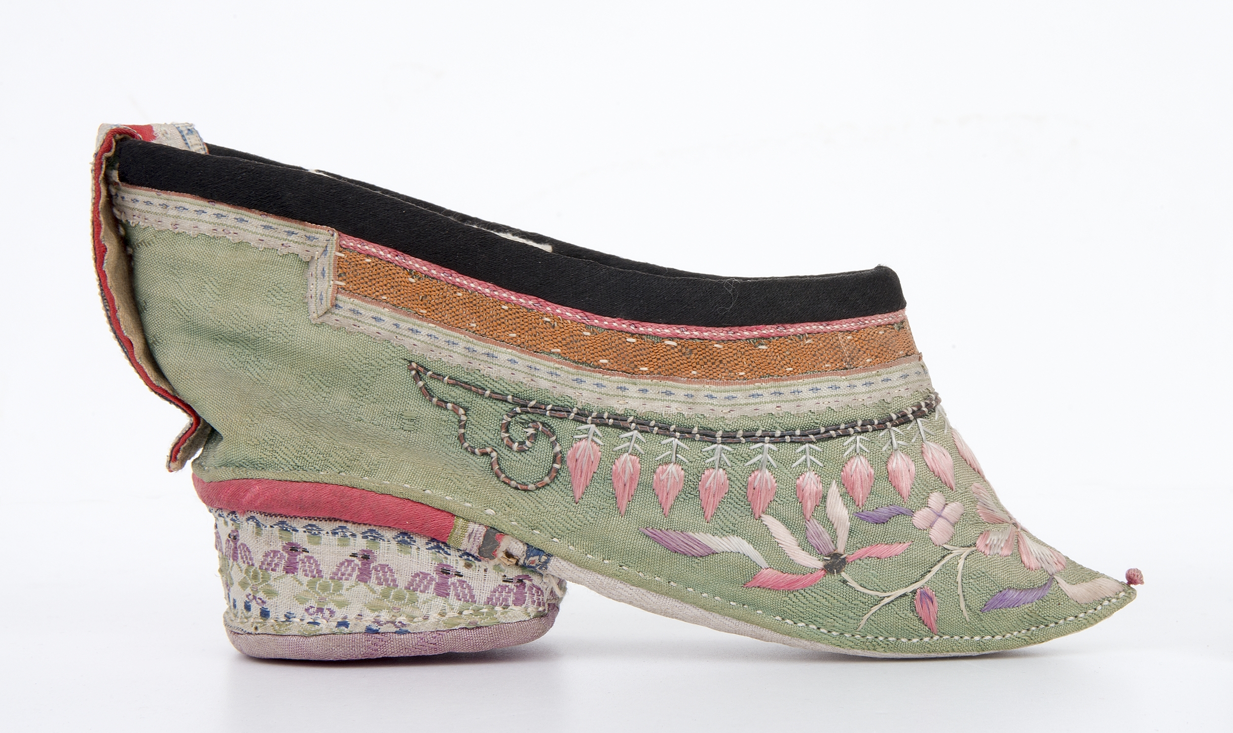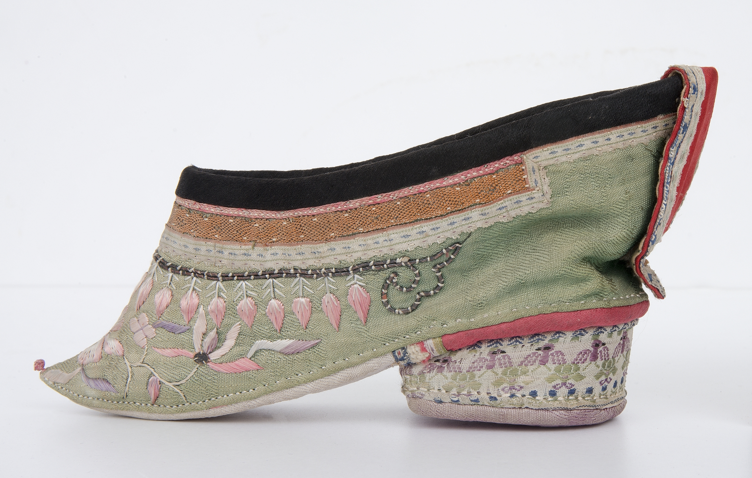 But ten, zwany lotosowym, jest przykładem elementu stroju kobiecego wyższych sfer chińskich, które praktykowały wiązanie stóp. Tradycja ta sięga X wieku, przetrwała niemal tysiąclecie, a została zapoczątkowana baśniową historią o chińskim Kopciuszku. Opowieść o pięknej dziewczynie ewoluowała, szczególną uwagę poświęcono jej małym stopom, nazywanym „małymi lotosami”. Stały się one przedmiotem fascynacji o zabarwieniu erotycznym. Wierzono, że dla mężczyzn najatrakcyjniejsze były jak najmniejsze stopy. Kobiety zaczęły poddawać się okrutnej praktyce łamania kości i bandażowania stóp, co powodowało szereg niezwykle bolesnych dolegliwości i ogromne trudności w poruszaniu się.
