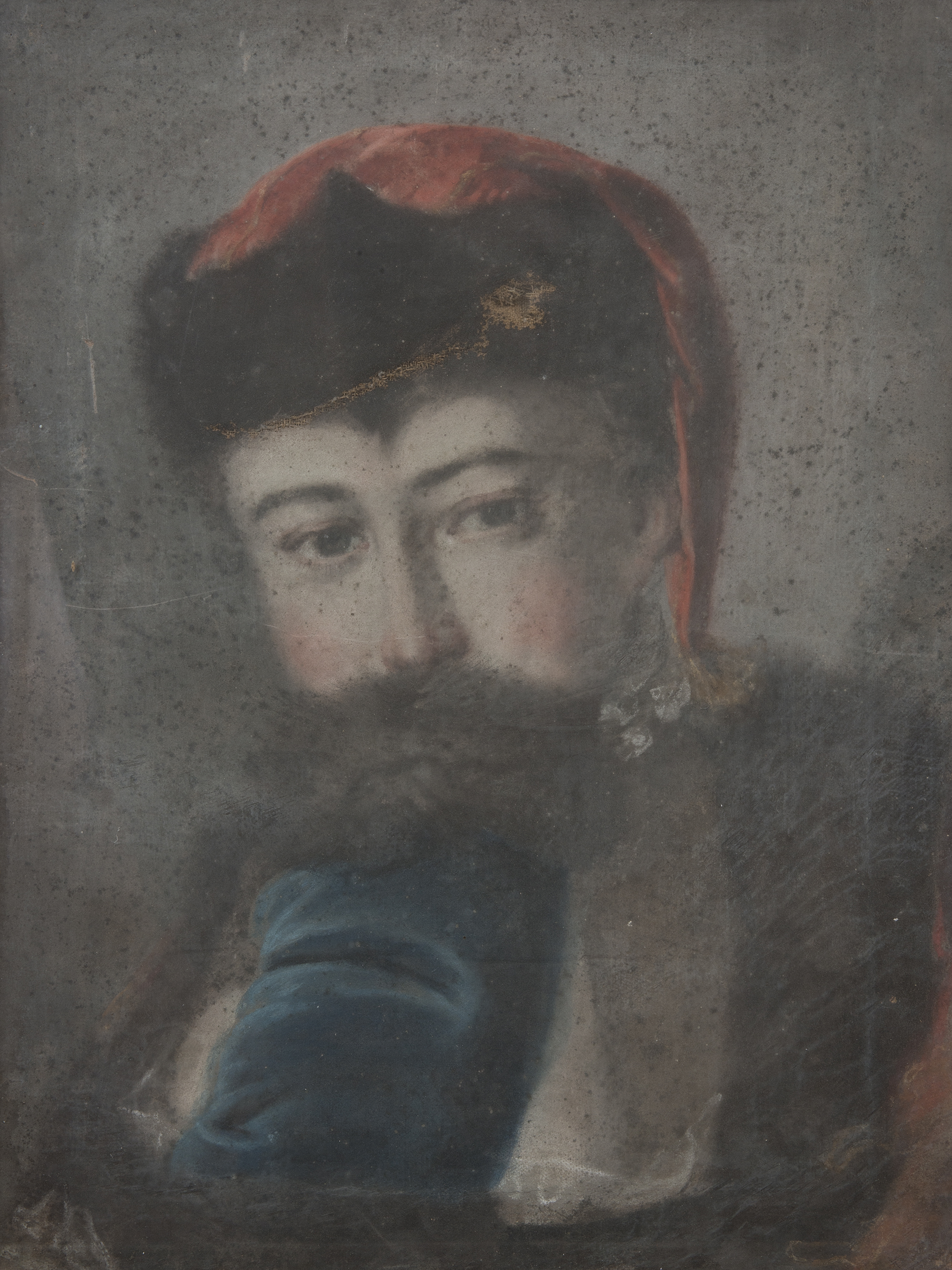 Pastel jest wzorowany na niemal identycznym przedstawieniu olejnym (płótno; 45 × 34,7 cm) kobiety trzymającej przy twarzy mufkę, autorstwa Pietra Antonia Rotariego (aukcja Christie’s, Nowy Jork, 2003 r., nr 68). Na podobnym koncepcie oparty jest także inny portret, na którym młoda, zalotna panienka ukrywa roześmianą twarz za trzymaną w ręku otwartą książką. Istnieje także wiele portretów tak samo upozowanych dziewcząt, które choć z odsłoniętym obliczem, jednak spoglądają na widza w podobny, charakterystyczny sposób, np. dziewczynka zajęta szyciem.