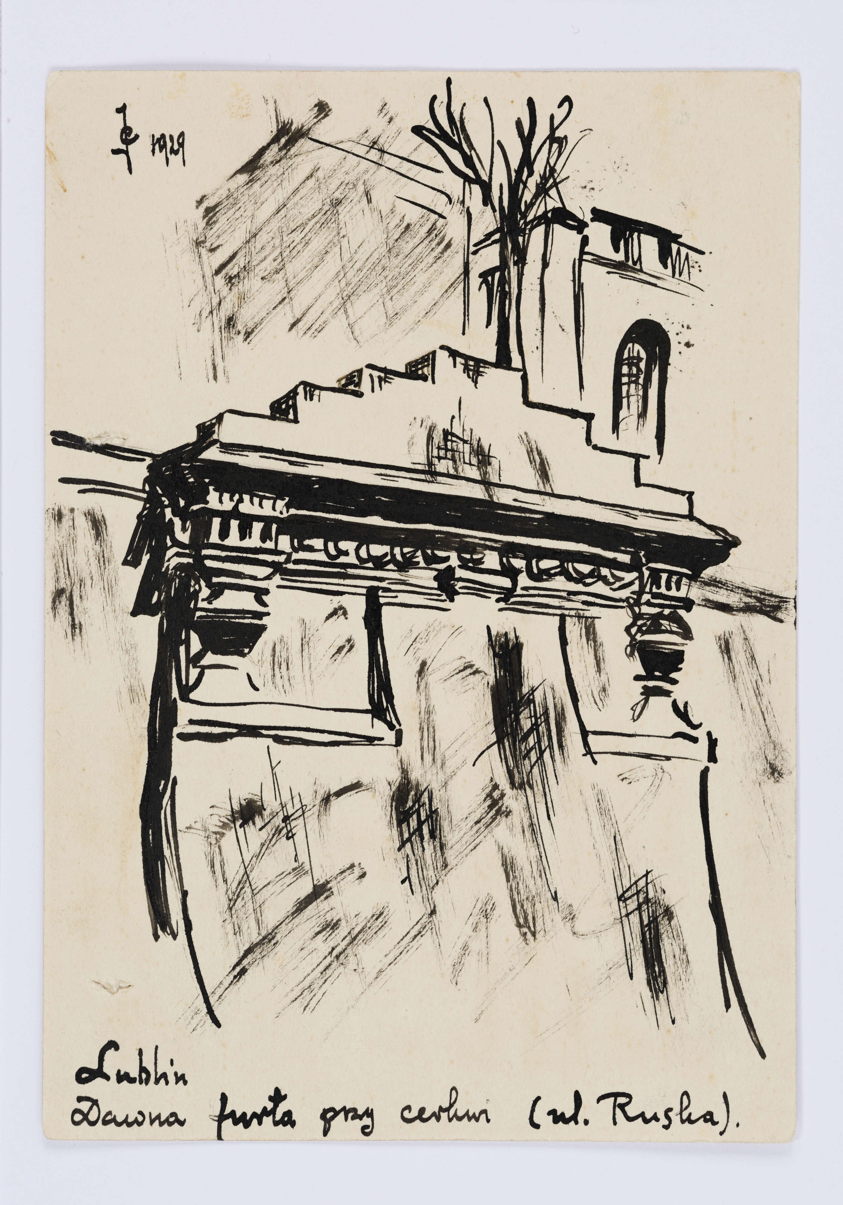 Karta pocztowa z rysunkiem Józefa Czechowicza i korespondencją do Koła Krajoznawczego przy Szkole Powszechnej nr 3 w Lublinie