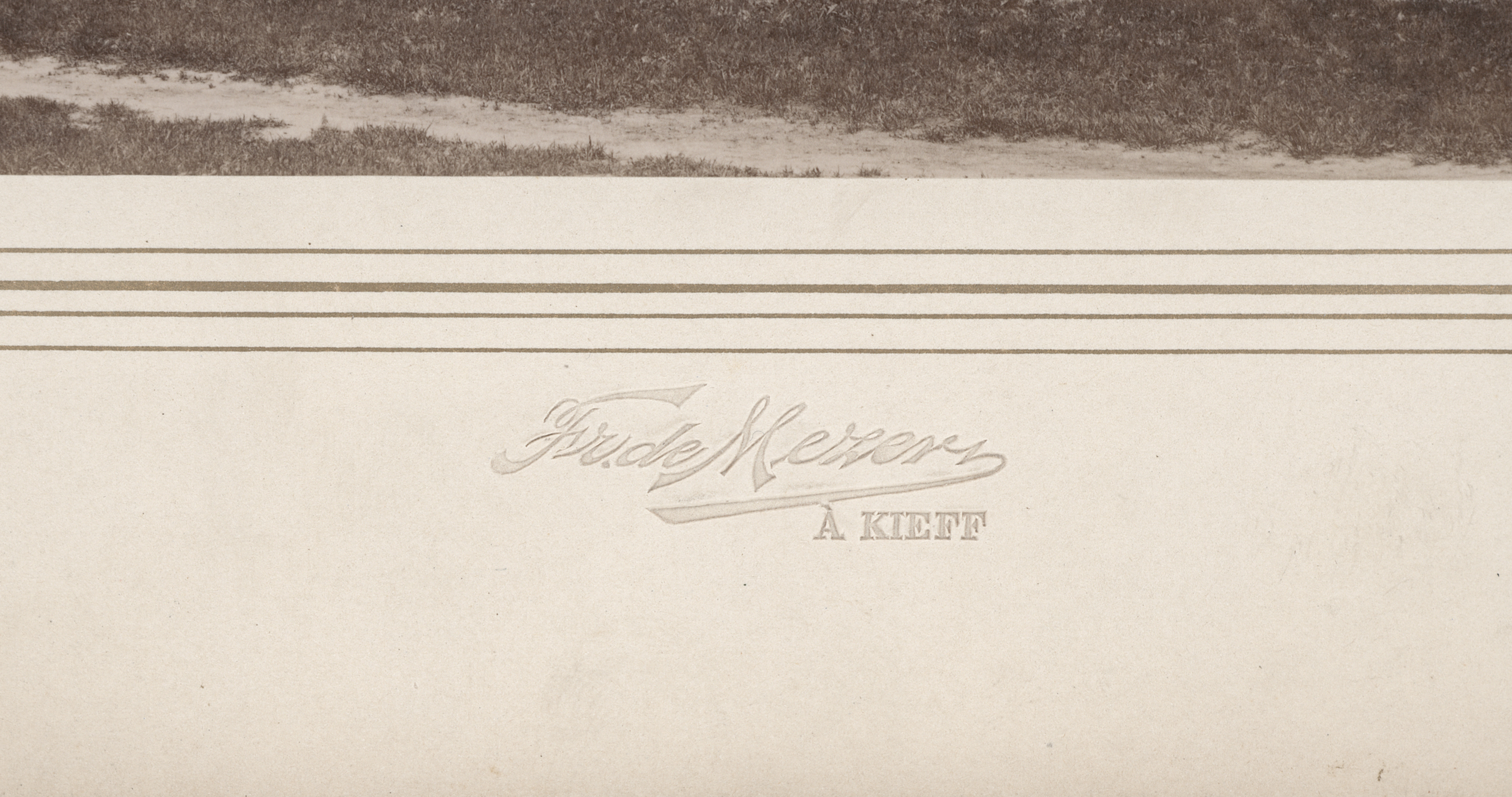 Każde z dwunastu zdjęć naklejone jest na sztywną kartę z nadrukowaną bordiurą o geometrycznym wzorze. Poniżej tej ozdobnej ramki znajduje się tłoczony znak firmowy fotografa „Fr. De Mezer A Kieff” – znak artysty fotografa. Na rewersie karty naklejony jest znak oficyny wydawniczej Leona Idzikowskiego w kształcie palety malarskiej z napisem: Librairie, Magasin de Musique et Salon Artistique Léon Idzikowski Kieff Maison Popoff.