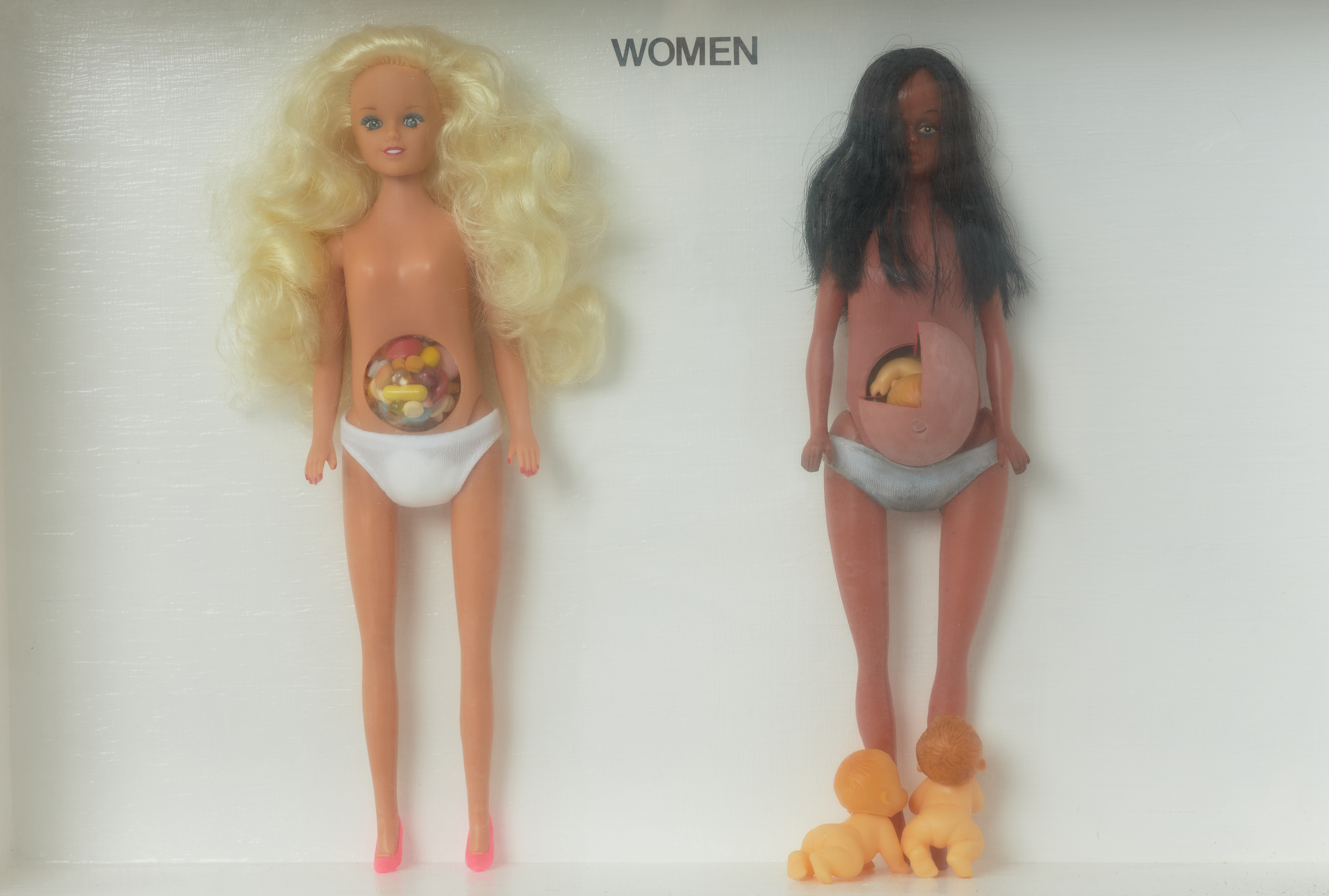 Ryszard Górecki (ur.1956) jest artystą posługującym się różnorodnymi środkami wyrazu – maluje, rysuje, tworzy obiekty i kolaże. Górecki nie odebrał klasycznego artystycznego wykształcenia. Jest absolwentem Wyższej Szkoły Pedagogicznej w Zielonej Górze. Twórcze połączenie sztuki i metod właściwych pedagogice miało i ma istotny wpływ na charakterystyczny styl uprawianej przez niego twórczości. Często pojawiają się w niej odniesienia do modeli upowszechniania wiedzy – naukowe diagramy, wykresy, gabloty edukacyjne i pomoce dydaktyczne. Przy ich pomocy artysta opowiada o współczesnym świecie. Jest to opowieść snuta z pozycji krytycznego i przenikliwego obserwatora. Głównym jej celem, jak podkreśla Górecki, jest wyrażenie sprzeciwu wobec niepokojących zjawisk społecznych – komercjalizacji życia, manipulacji, jakim poddaje nas nachalna reklama, bezdyskusyjnego przyjmowania ról, jakie wyznacza nam kultura i społeczeństwo. Obiekt pt. „Women” (1997), który zasilił szczeciński zbiór sztuki współczesnej w roku 2008, wpisuje się w ten krytyczny ton. Praca powstała w cyklu obiektów-gablot nawiązujących formą do pomocy dydaktycznych, które artysta zaczął konstruować w połowie lat dziewięćdziesiątych ubiegłego wieku. Do jej stworzenia posłużył się zabawkami, które bawiąc, pełnią jednocześnie znacznie poważniejszą rolę – uczą i przygotowują dzieci do podjęcia określonych ról społecznych w przyszłości. Impulsem do stworzenia „Women” było, jak mówi artysta, pojawienie się na niemieckim rynku zabawkarskim lalki Petra, zaprojektowanej jako kobieta w zaawansowanej ciąży. W komentarzu autorskim towarzyszącym pracy artysta zwraca uwagę na charakterystyczną we współczesnej kulturze konfrontację dwóch przeciwstawnych i konkurujących ze sobą modeli kobiecości – pierwszy promuje wizję niezależnej kobiety kształtującej swój wizerunek i ciało zgodnie z aktualnymi trendami, drugi kobiety postrzeganej i wartościowanej przez pryzmat jej zdolności reprodukcyjnych i macierzyństwa.