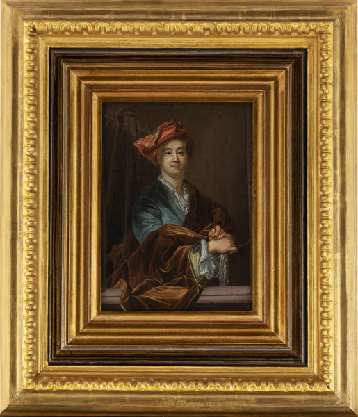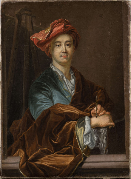 Z tego okresu pochodzi wizerunek młodego mężczyzny w czerwonycm turbanie, będący przykładem portretu realistycznego. Sylwetka modela została przedstawiona w półpostaci odciętej od dołu linią parapetu oraz w ujęciu en face, czyli z twarzą zwróconą frontalnie do widza. Artysta prezentuje zapewne wizerunek swojego przyjaciela, którego umieszcza w malarskim atelier, otaczając go atrybutami malarza, takimi jak sztaluga czy trzymany w dłoni pędzel. Sportretowany przez Kupecký’ego młody malarz został przedstawiony w przebraniu, dzięki któremu artysta mógł popisać się swoim malarskim warsztatem w odtwarzaniu struktur różnych materiałów. Uwagę zwraca bowiem nie tylko wirtuozeria drapowań tkanin, ale również fantazyjnie wiązany czerwony turban na głowie mężczyzny. W rzeczywistości wyszukanie udrapowana tkanina, którą w razie konieczności fantazyjnie zwijano, to wczesnoniderlandzkie męskie nakrycie głowy, zwane chaperon, w formie kaptura-peleryny.