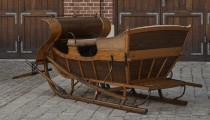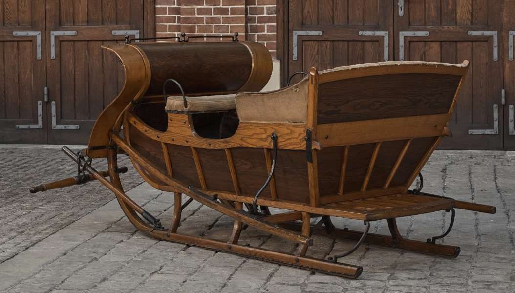 Sanie wyjazdowo-spacerowe, wiejskie, przeznaczone do powożenia bez służby i alternatywnie z profesjonalnym powożącym. Stosowano do nich zaprzęg jednokonny lub dwukonny w uprzęży szorowej z brązowej skóry. Odbywano nimi spacery – wówczas koniom zakładano na szyje dzwonki lub też, dojeżdżano na polowania – wówczas dzwonków nie stosowano, by nie płoszyć zwierzyny. Opisywane sanie, jako używane tylko w majątku, a więc wiejskie, są w naturalnym kolorze drewna. Podsanie z drewnianymi, okutymi płozami mają posmyki (drewniane drążki pomiędzy płozami a orczycą), przy których zawieszone są orczyki. Skrzyniowe, nadsanie ma z przodu wysoki wygięty esowato śnieżnik (zabezpieczał przed pecynami - wybijanymi spod kopyt koni grudkami śniegu), przy którym widzimy niski widelec lejcowy, a po bokach, drewniane odboje (drewniane poziome listwy), które chroniły sanie przed przewróceniem na bok. Siedziska w saniach znajdują się dwa, jedno za drugim - przednie to kozłowa lekko wygięta ławka, którą zajmował stangret. Za nią siedzenie główne z pełnym zapleckiem i wysokimi ściankami bocznymi zajmowało dwóch pasażerów bądź powożący saniami właściciel - wówczas przednia ławka była pusta a lejce opierały się na widelcu przy śnieżniku. Tapicerka obu siedzisk wykonana jest z beżowego sztruksu. Z tyłu skrzyni umieszczono niską, ażurowa, ze szczebli, półkę-bagażnik. Pasażerowie jadący saniami zakładali na swoje wierzchnie pokrycia dachy - futra zszyte z dwóch warstw, a także na swoje obuwie berlacze- wysokie buty uszyte z futra lub wojłoku. Okrywano się także baranicami – błamami z futra pokrytymi dopasowanymi do tapicerki tkaninami. Także stangreci zakładali berlacze, liberie na błamach futrzanych, przeważnie z baranów i takież wysokie czapy. Sanie po rodzinie Potockich z Łańcuta to jedne z trzech w tym typie, jakie stoją w wozowni łańcuckiej są jednocześnie jedynymi z nielicznych takich pojazdów w Europie. Zachowane są poza tym w oryginalnym stanie, co również jest wyjątkowe.