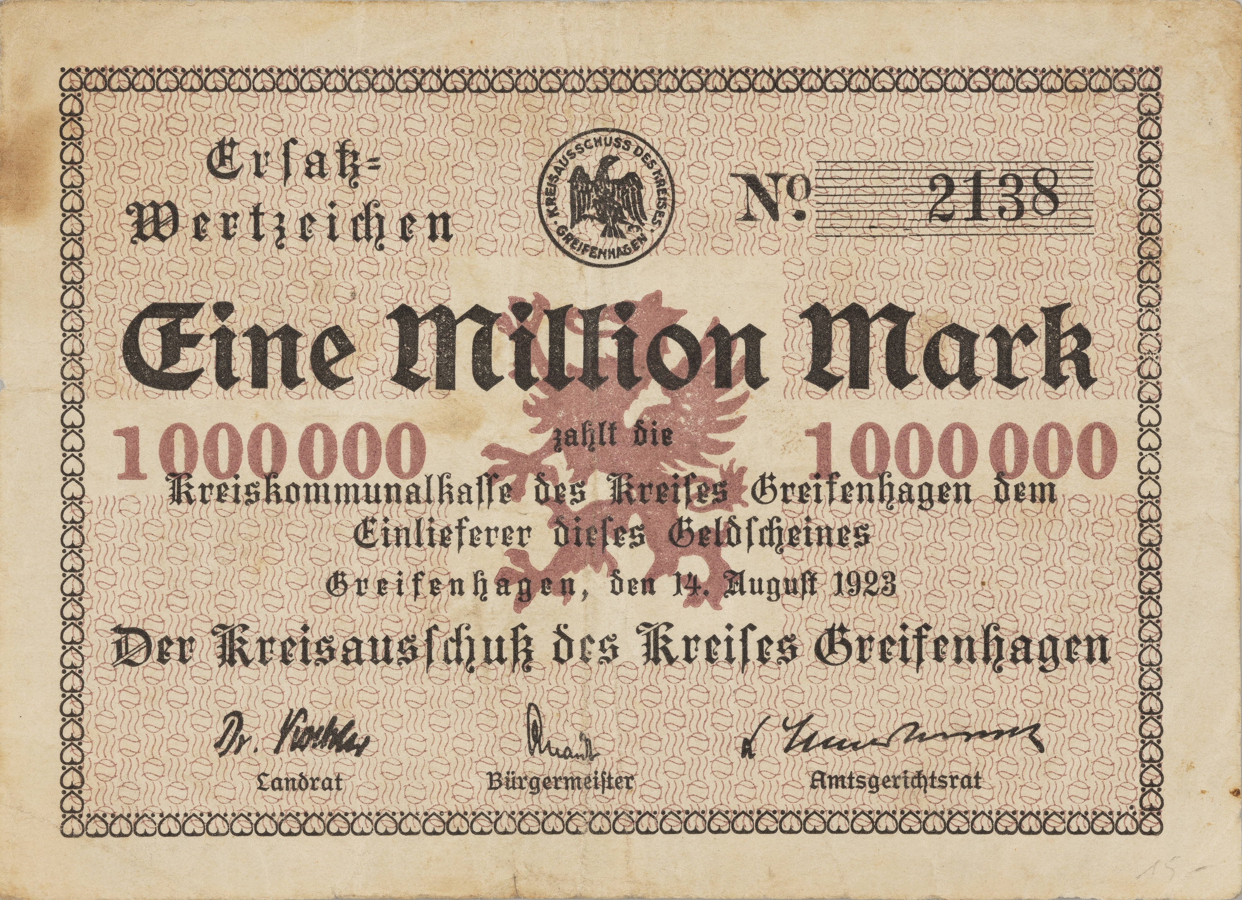 Notgeld, Ersatz-Wertzeichen, Eine Million Mark