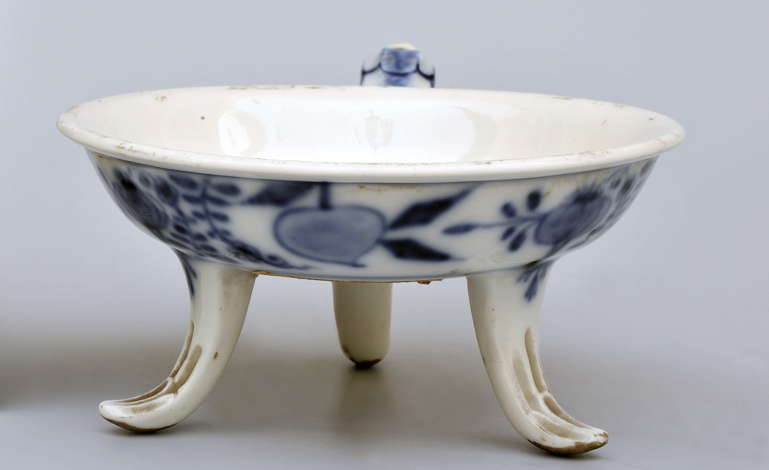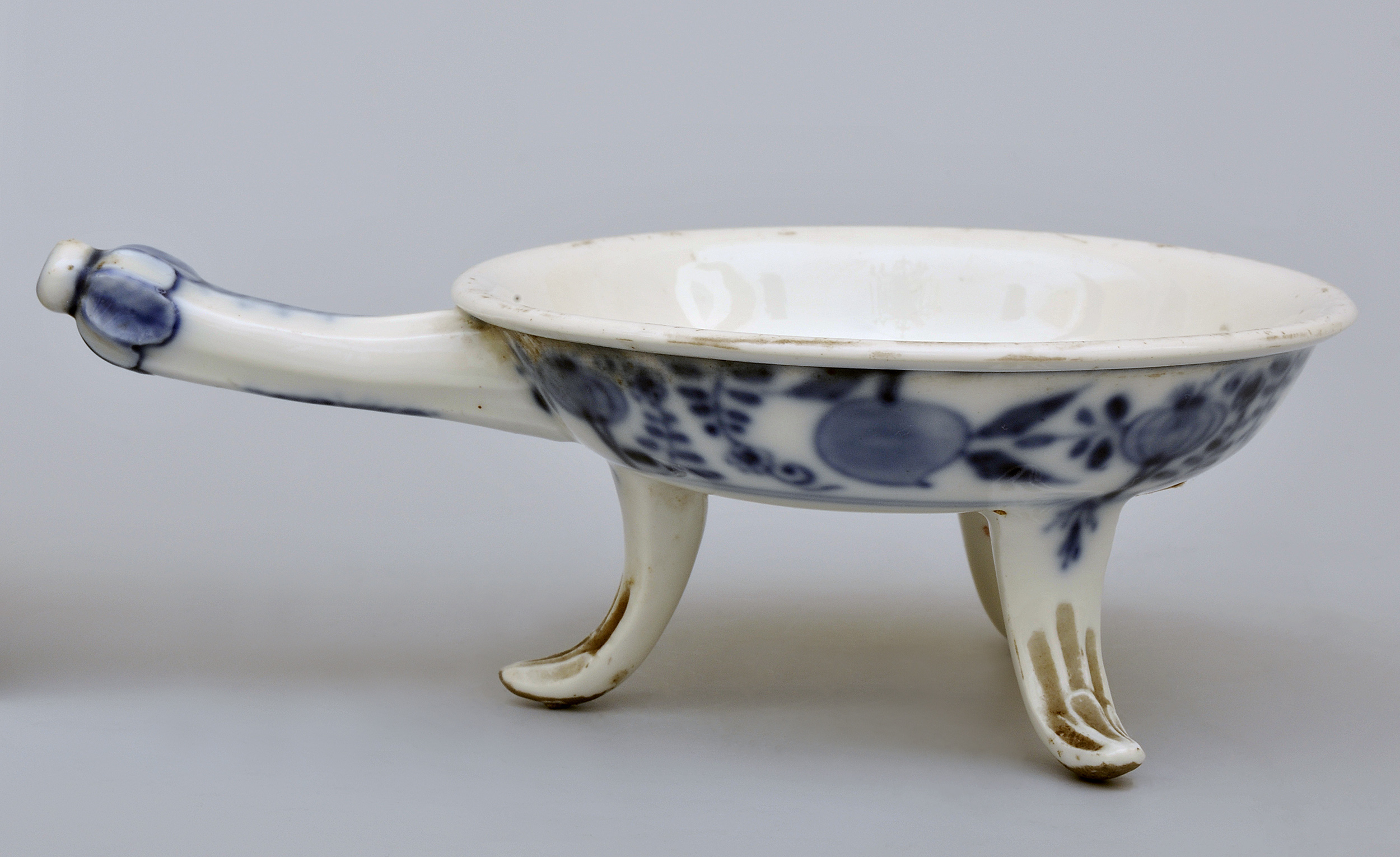 Porcelanowy tygielek na trzech nóżkach z rączką. W kolekcji wilanowskiej znajdują się 4 tego typu naczynia (Wil.793/1-3 oraz nieco odmienny Wil.2047).