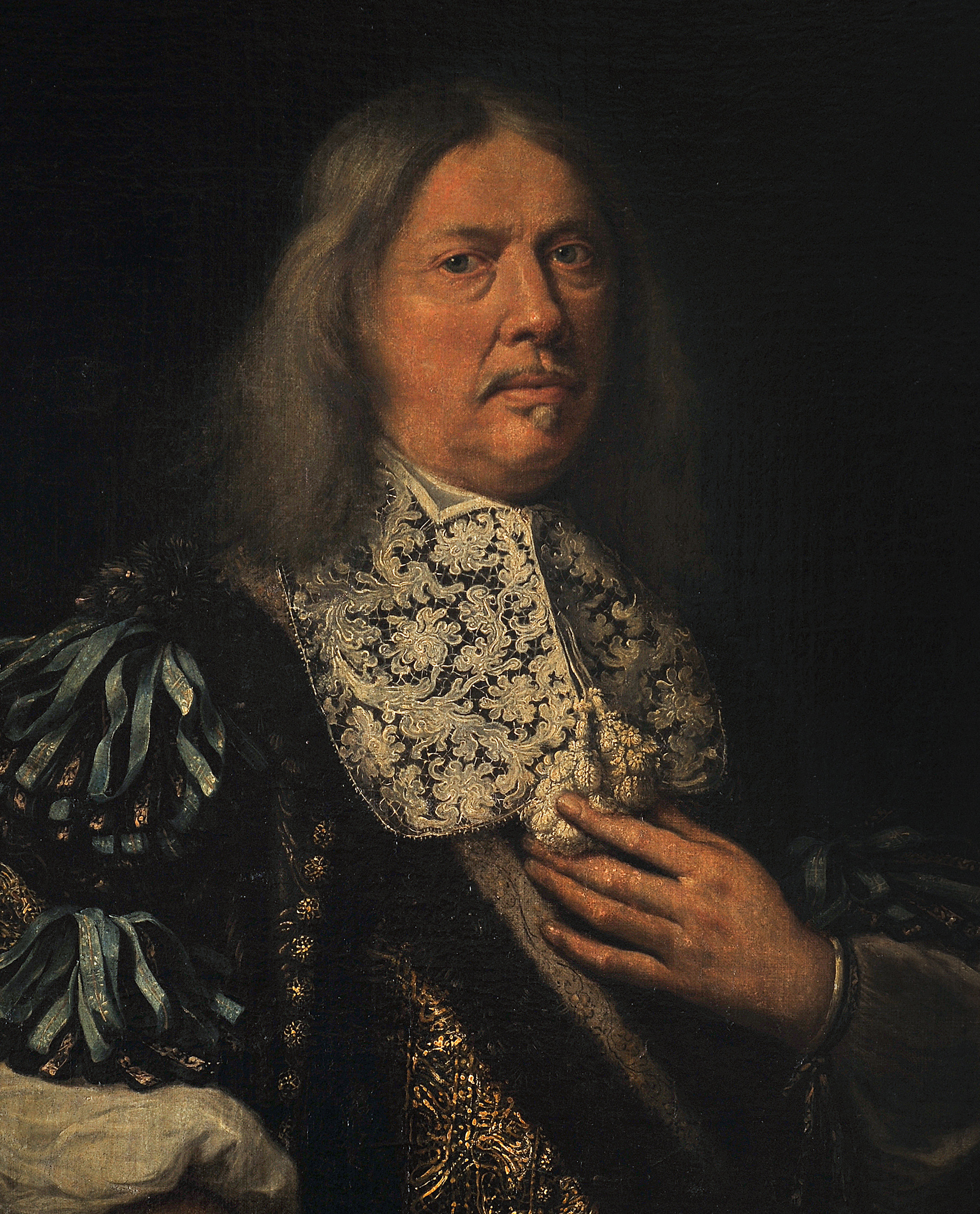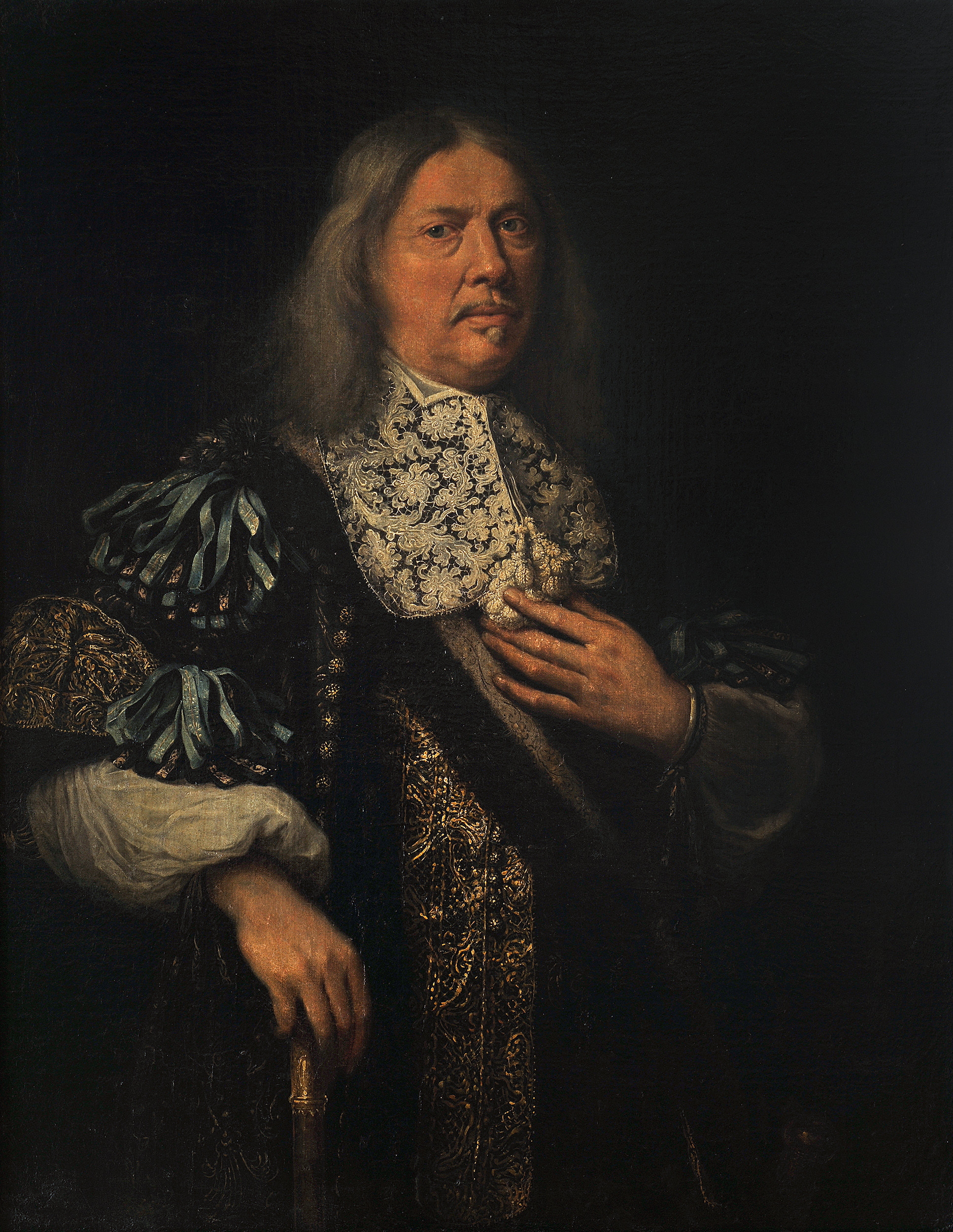 Jest to obraz skrojony na miarę i potrzeby zamawiającego, zgodny z panującym gustem, wiernie odzwierciedlający trendy w modzie i sposobie autoprezentacji. Starszy już mężczyzna z rozpuszczonymi, długimi włosami, wąsikiem i małą bródką, prawą ręką wsparty jest na lasce ze złotym okuciem, lewą trzyma na wysokości piersi. Wytwornie ubrany w wyszukany zielony strój, który zdobią niebieskie wstążki i złoty haft. Zwraca uwagę i zachwyca kołnierz z brabanckiej koronki – zarówno w aspekcie sposobu jego malarskiego zobrazowania, jak i jako dzieło wprawnej ręki i świadectwo niepospolitych umiejętności rzemieślniczych. Widoczne fragmenty ciała modeluje wybornie kładziony światłocień. Tą samą zasadę, konieczną do zbudowania interesującej przestrzeni, malarz przykłada do wszelkich misternych szczegółów ubioru. Konsekwencja i rzetelność artysty sprawiają, że w odniesieniu do tego portretu możemy mówić mutatis mutandis o weryzmie.