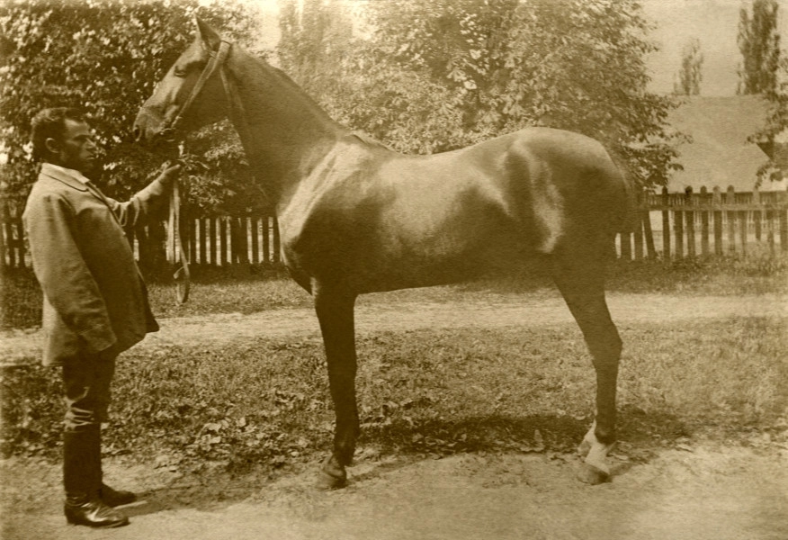 Fotografia przedstawia masztalerza ordynacji Lubomirskich wraz z koniem o imieniu Fiateo. Fotografia została wykonana najprawdopodobniej na terenie stadniny w Nowosielcach lub nieopodal pałacu Lubomirskich w Przeworsku.