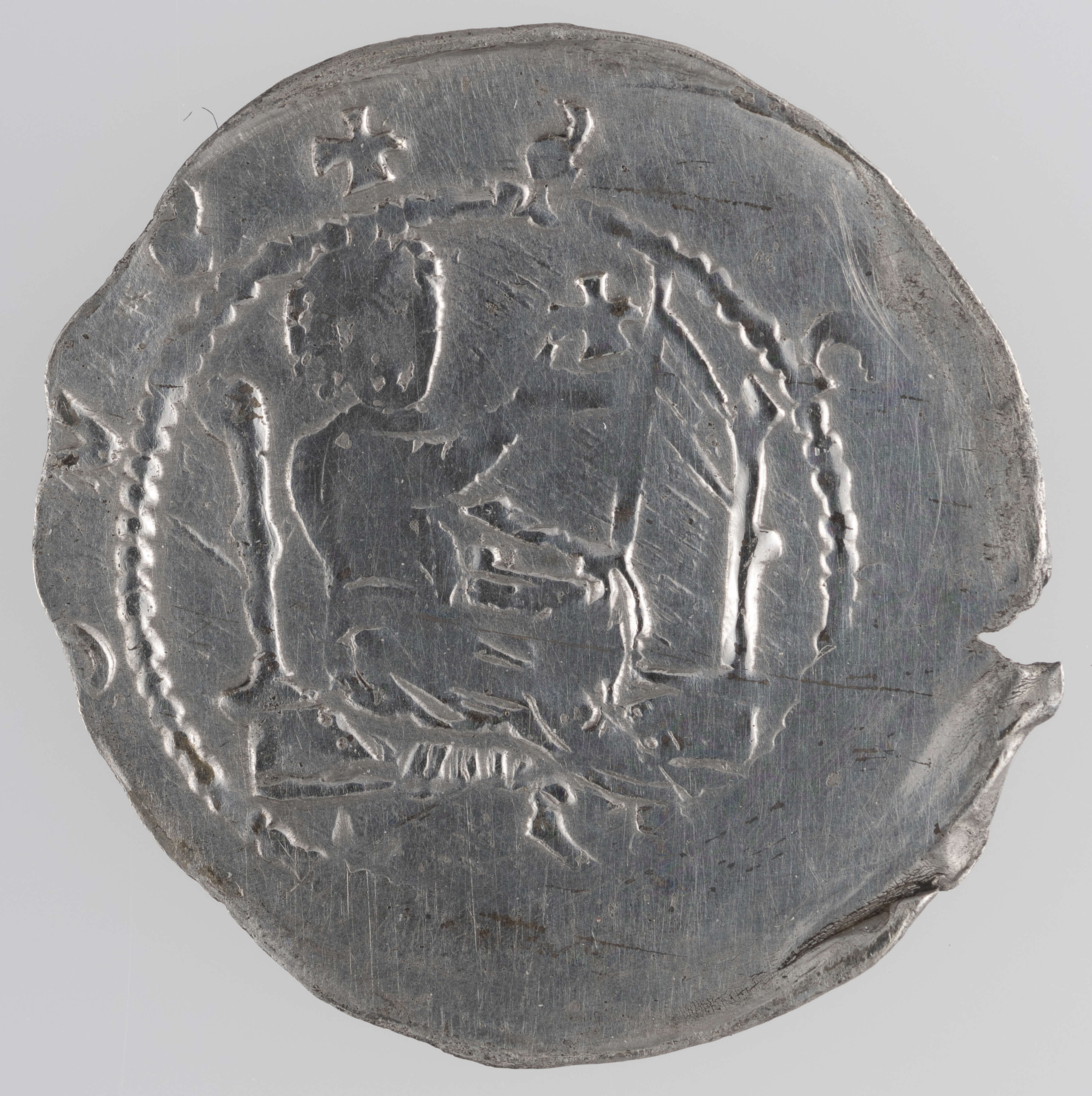Przykładem nieksiążęcej możnowładczej emisji jest najprawdopodobniej omawiany denar. Na awersie widnieje postać na tronie z krzyżykiem równoramiennym w dłoni, natomiast na stronie odwrotnej jest umieszczone przedstawienie biskupa z pastorałem. Wokół wyobrażeń biegnie napis SCS VENCESLAVS, który odnosi się do św. Wacława – patrona katedry krakowskiej. Osoba świętego może wskazywać na Kraków, jako miejsce powstania monety. Wyobrażenie na awersie – wbrew treści napisu – jest utożsamiane nie z patronem katedry, lecz z panującym księciem. Pod postacią biskupa kryje się natomiast emitent. W związku z tym, że omawiana moneta jest wydatowana na pierwsze trzydziestolecie XIII wieku, jej emitentem mógł być Wincenty Kadłubek (1208–1218) lub Iwo Odrowąż (1218–1229). Za przyjęciem ostatniej możliwości przemawia charakter nasyconego splendorem pontyfikatu Iwona Odrowąża, biskupa krakowskiego pochodzącego ze znakomitego i zamożnego rodu.