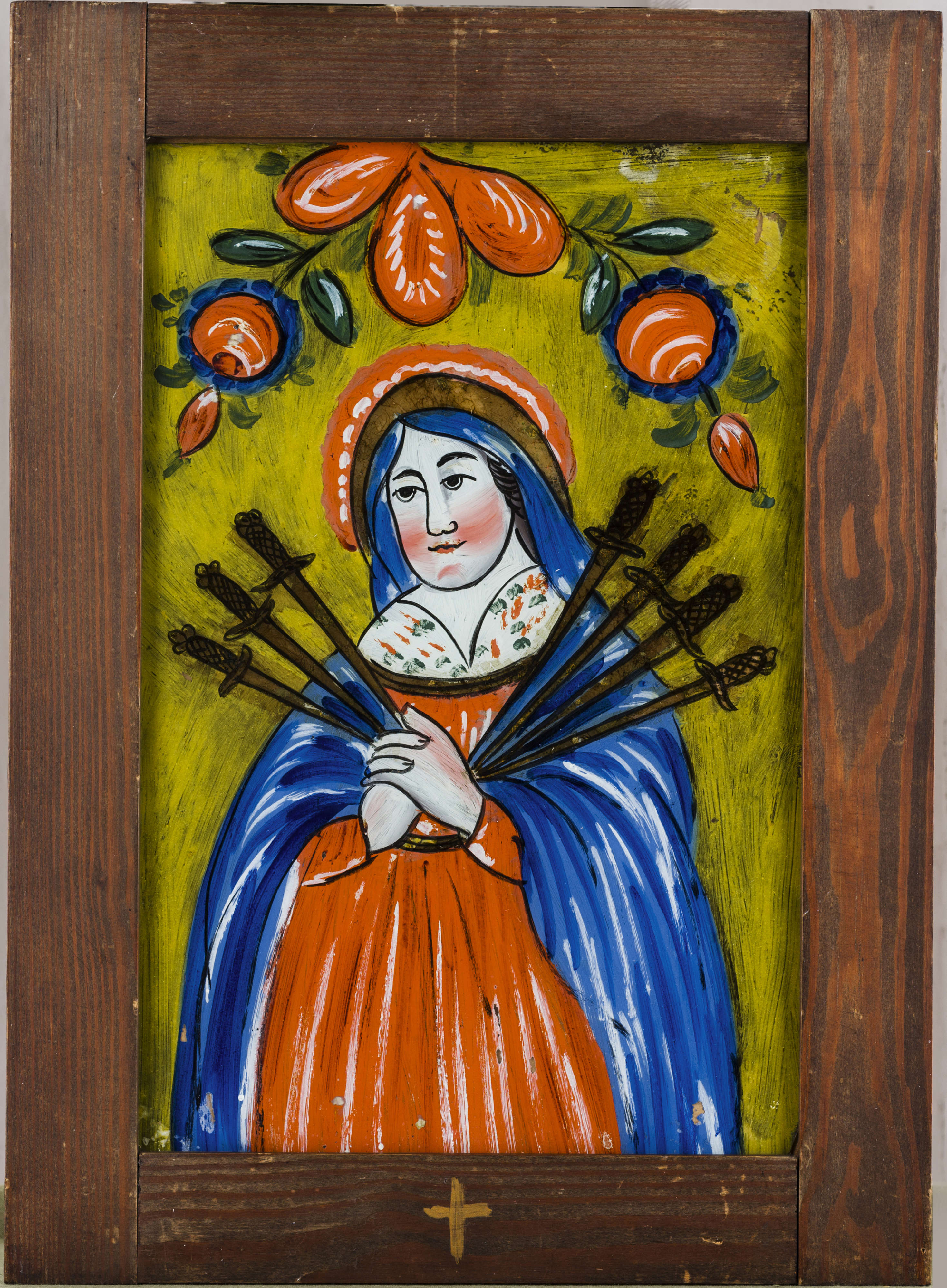 W obrazy malowane na szkle zwykle zaopatrywano się na odpustach lub u sprzedawców wędrownych – obraźników. Wieszano je nad stołem w „świętym kącie” lub u powały, opierając na listwie, często bogato zdobionej ryzowaniem, biegnącej przez całą szerokość najważniejszej ściany, zazwyczaj na wprost wejścia. Odbijały się w nich płomienie z paleniska pieca czy światła lampy naftowej, które rozjaśniały wnętrze. W ten sposób tworzył się swoisty panteon biblijnych i świętych postaci zerkających z góry, jak z nieba, na chłopską rodzinę. Opiece świętych z obrazów powierzano także najważniejsze dokumenty – za obrazami lub pod ich oprawę chowano akty nadania ziemi, testamenty itp.