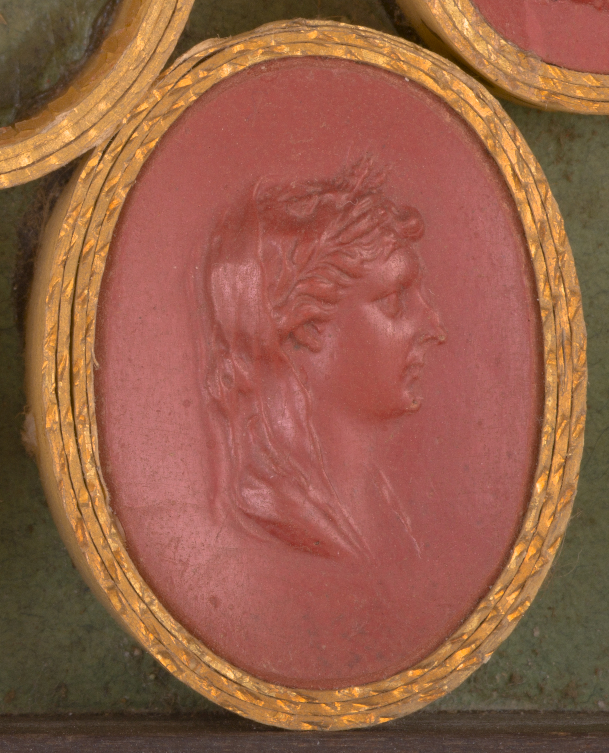 Na owalny, wypukły wycisku na lekko wklęsłym tle przedstawiony jest prawy profil popiersia młodej kobiety. Jest to prawdopodobnie wizerunek Liwii Druzylli rzymskiej patrycjuszki, matki późniejszego cesarza Tyberiusza ukazanej jako Ceres. Ukazana została w opadającej na tył głowy chuście i wieńcu kłosów na głowie. Kopię gemmy z takim samym przedstawieniem wykonywał Antonio Pichler. Wycisk jest identyczny jak opisany w „Dactyliothecae universalis” Philippa Daniela Lipperta.