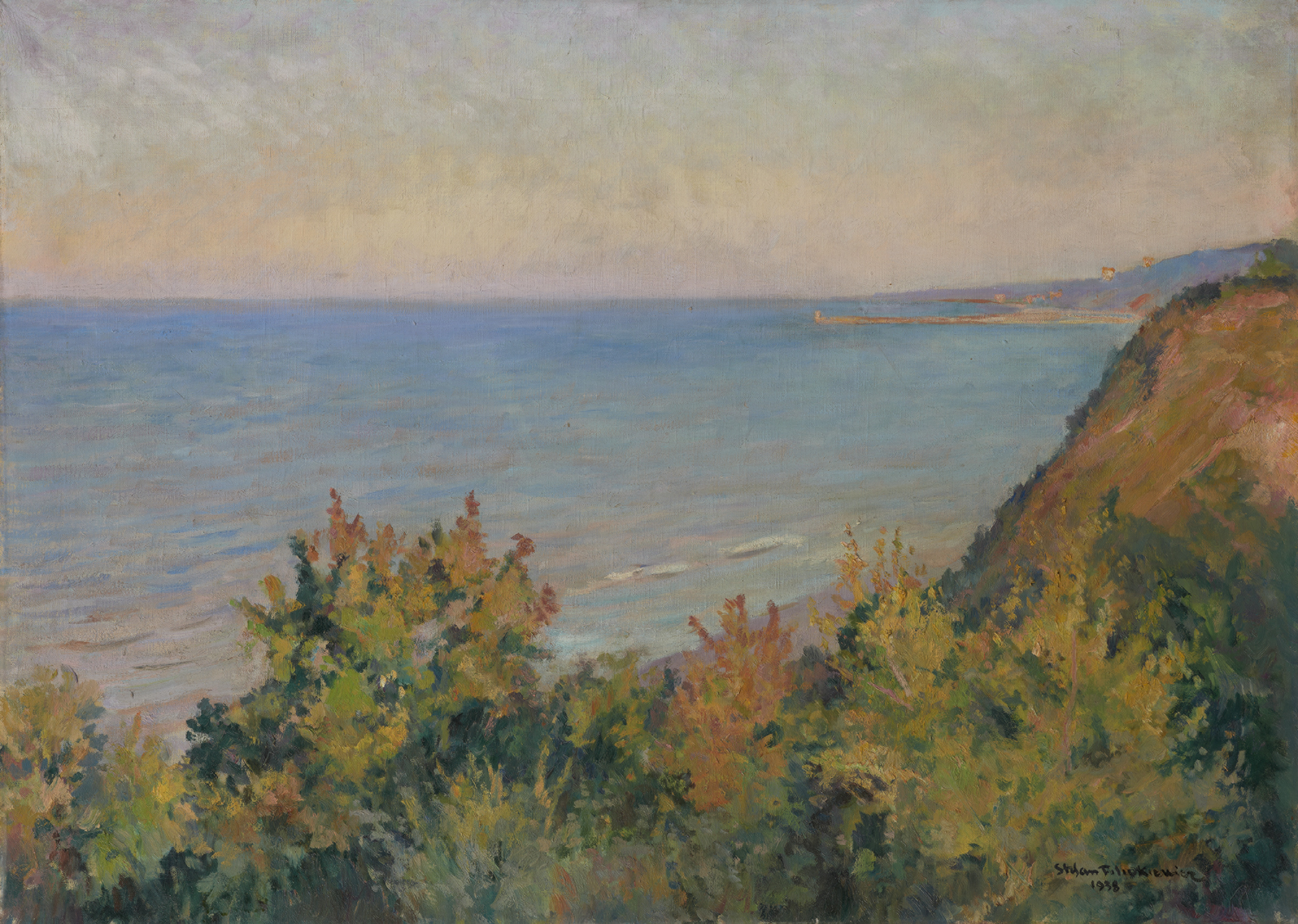 Powrót Stefana Filipkiewicza – absolwenta, a teraz wykładowcy – w mury krakowskiej Akademii Sztuk Pięknych zbiegł się ze wzmożonym zainteresowaniem Pomorzem i pejzażem bałtyckim wśród profesorów i ich wychowanków. W latach dwudziestych sporadycznie nad Bałtykiem bywali Władysław Jarocki, Stanisław Kamocki, Henryk Uziembło i Leon Wyczółkowski. Świeży absolwent uczelni, Marian Turwid, wspominał po latach powstanie akademickiego Komitetu Morskiego, który od 1930 roku miał propagować zamianę letniego pleneru z tradycyjnego Podhala na nowe, nieznane północne prowincje. Ironizował: „Dość już mamy gór i hal. Nie chcemy malować więcej Morskiego Oka, tylko morską toń. I to od Gdańska – aż (tymczasem) po Krokowo” (Pierwsza fala, „Arkona” 1946, nr 11, s. 12–13). Filipkiewicz należał do tych reprezentantów pejzażowej szkoły Jana Stanisławskiego, którzy zaczęli regularnie przyjeżdżać w rejon Jastrzębiej Góry, Rozewia i Helu. Okolice przylądka i półwyspu utrwalił w licznych obrazach, konstruowanych w niemal identyczny sposób: z klifem porośniętym bujnymi krzewami na pierwszym planie i morskim tłem, zakomponowanych na linii diagonalnej oraz skontrastowanych kolorystycznie lub walorowo. Zgodnie z zasadami wpojonymi przez mistrza, sztafaż pojawia się niezwykle rzadko, zminimalizowany do rybackiej łodzi wciągniętej na plażę lub samotnej żaglówki na tle błękitu. Zbliżone motywy pojawiały się na ekspozycjach monograficznych Filipkiewicza urządzanych w latach trzydziestych, a także trzech Wystawach Morskich, organizowanych w latach 1937, 1938 i 1939 na zmianę przez warszawskie Towarzystwo Zachęty Sztuk Pięknych i Towarzystwo Przyjaciół Sztuk Pięknych w Krakowie. Krytyka oceniała dzieła zazwyczaj łagodnie, choć głosy o stosowaniu przestarzałej formuły początku wieku, a także o rutynie Filipkiewicza nie należały do odosobnionych. Za artystą na Jastrzębią Górę podążyli dalsi absolwenci krakowskiej uczelni: jego młodszy brat Mieczysław, Ignacy Pieńkowski oraz Wojciech Weiss.