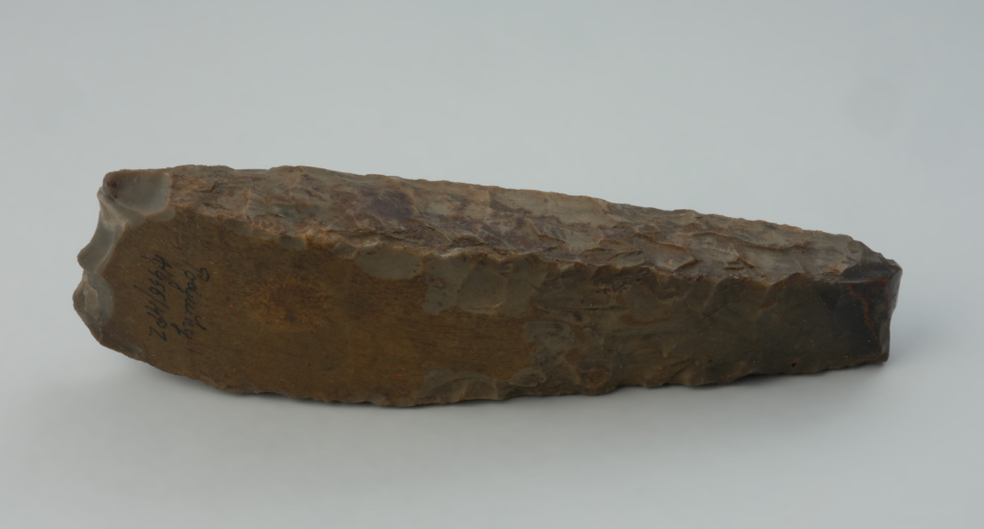 Czworościenna, trapezowata forma z wąskim i tępym obuchem pozwala łączyć narzędzie z neolityczną kulturą pucharów lejkowatych.