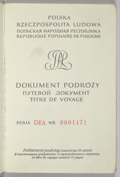 Dokument podróży Krystyny Niedziółki – jak wówczas nazywała się Krystyna (Fanny) Kurc (dokument podróży - dokument o charakterze paszportu, jednak wydawany osobie niemającej obywatelstwa polskiego; Żydzi polscy wyjeżdżający z Polski w okresie Marca '68 musieli podpisywać dokument ze zrzeczeniem obywatelstwa).