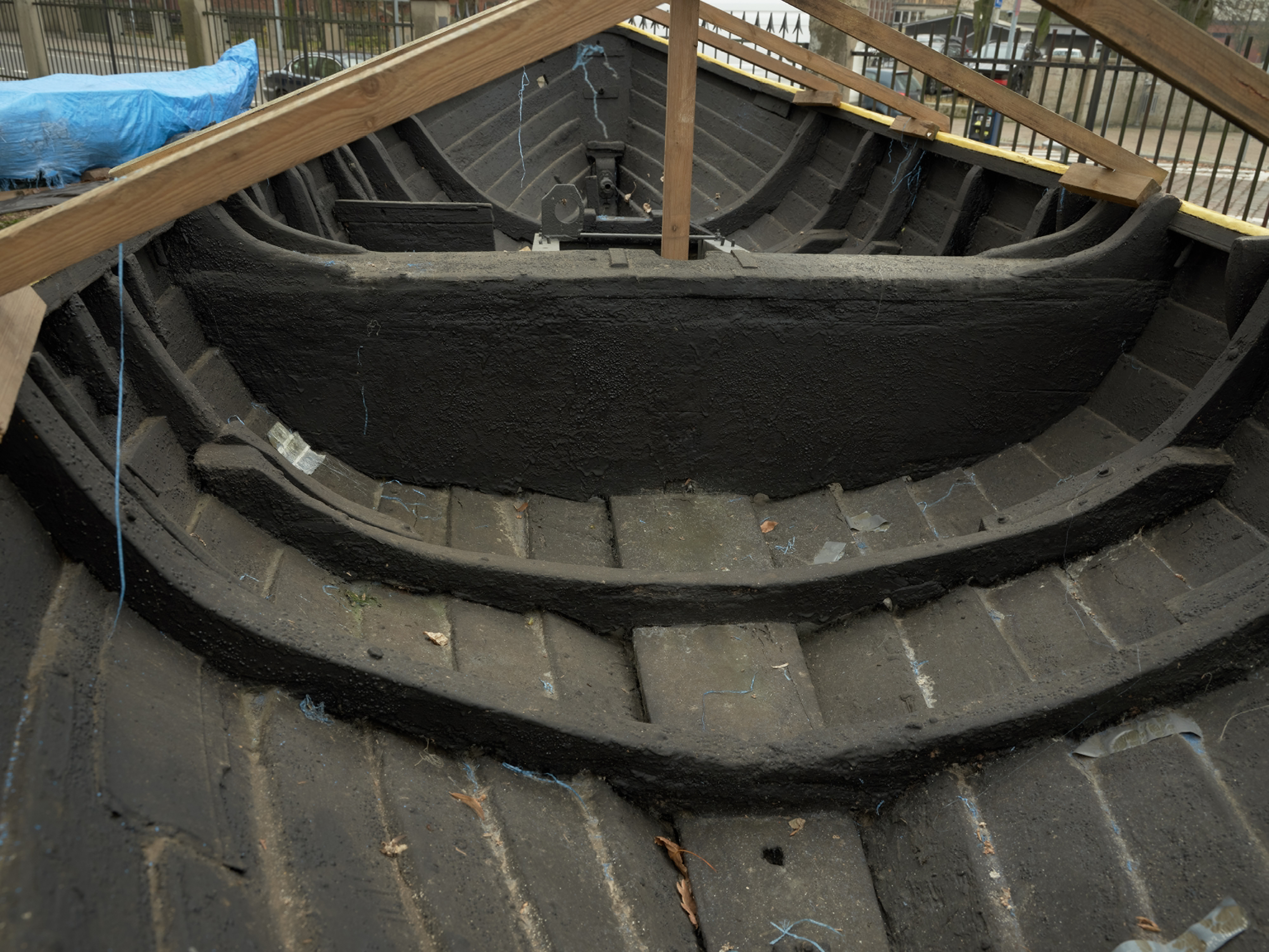 Podstawowym sprzętem rybaków śródlądowych i morskich były drewniane łodzie zróżnicowane pod względem wymiarów i wyposażenia. Ich wyrobem i naprawami zajmowali się szkutnicy. Zawód ten był często dziedziczony z pokolenie na pokolenie. Przykładem przedwojennego szkutnictwa zachodniopomorskiego jest łódź z lat trzydziestych XX wieku, wykonana najprawdopodobniej w warsztacie w Mielnie. Składa się z typowych dla łodzi klepkowych elementów wykonanych z drewna dębowego: stępki, wręg, stewy oraz klepek. Stępka jest osią konstrukcyjną, na której opierają się wręgi tworzące szkielet łodzi. Przedłużeniem stępki w kierunku dziobu jest stewa ostro zagięta ku górze. Pokrycie szkieletu łodzi tworzą klepki, zwane też plankami, które łączone między ze sobą „na zakładkę”. W środkowej części kadłuba znajduje się gródź z ławką i służącym do mocowania masztu jarzmem wraz z gniazdem. Konstrukcję dna wzmacniają denniki, na których umiejscowiono metalową ramę na osadzenie silnika. Możliwe, że rama wraz z silnikiem została zamontowana na łodzi wtórnie. Do czasów współczesnych nie zachował się maszt oraz ster, brakuje także śruby napędowej i silnika. Łódź przeszła konserwację w pracowni Działu Konserwacji Zabytków MNS.