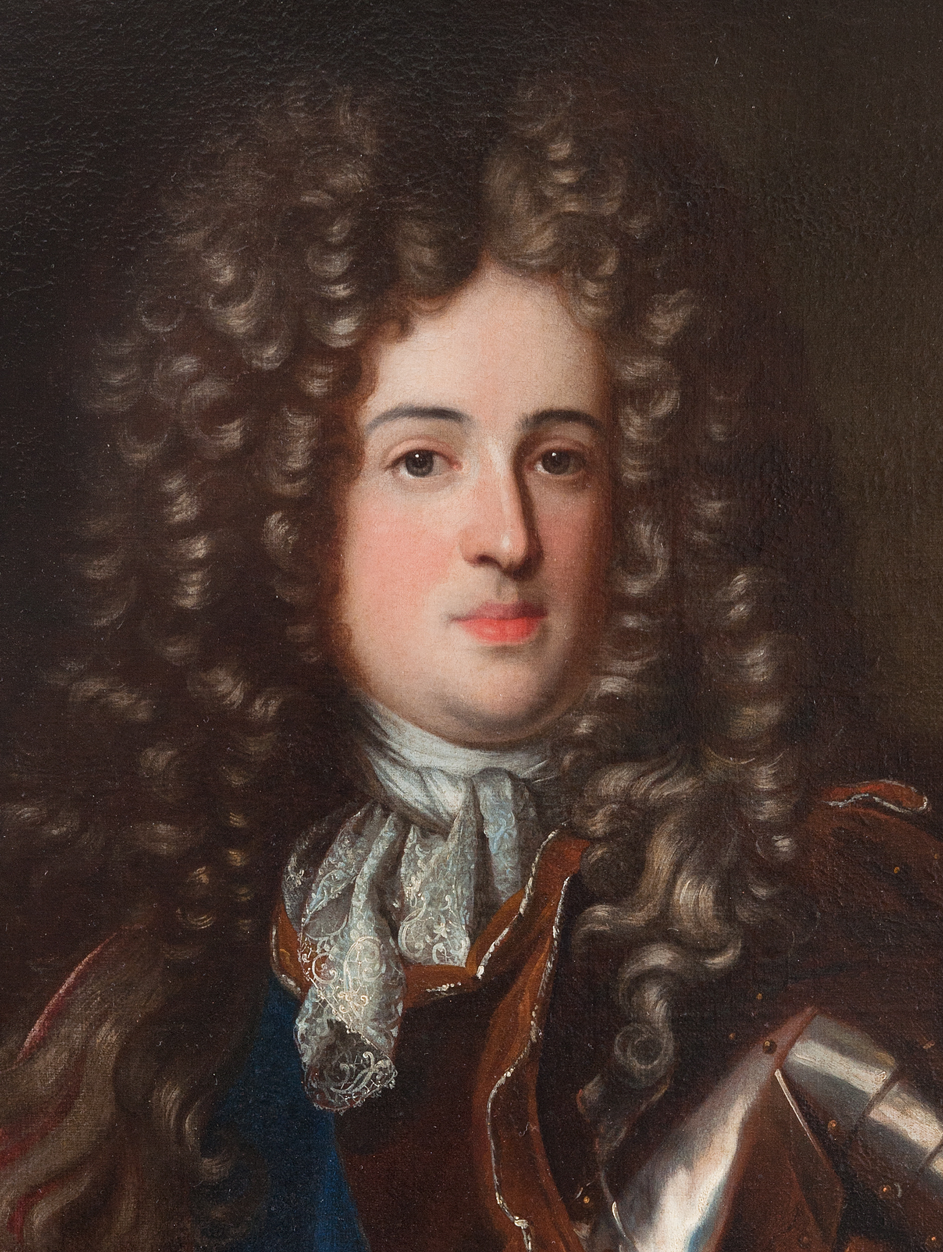 Portret Aleksandra Benedykta Sobieskiego prezentuje paryski szyk: ukazany w wysokiej peruce opadającej na ramiona, z koronkowym żabotem pod szyją. Lśniąca zbroja wraz z przerzuconym przez prawe ramię różowym płaszczem jest standardowym elementem portretu reprezentacyjnego. Na pozycję w hierarchii społecznej wskazuje niebieska wstęga z przypiętą gwiazdą Orderu Ducha Świętego. Lewą ręką strojną w brązową rękawiczkę zgrabnie wspiera na biodrze. Obraz wykonany z dużą dbałością o szczegóły, wykończony małym pędzelkiem udatnie charakteryzującym różnorodność materii. Dobrym rozwiązaniem okazało się zastosowanie światła rozproszonego, które pozwala na równomierne dowartościowanie każdego elementu. Autor skupił się na utrwaleniu podobieństwa, takie zagadnienia jak kolor zostawiając przypadkowi. Uwagę zwraca widoczny, a po bliższym przyjrzeniu się uderzający, brak spójności między przedstawieniem twarzy a reszty sylwetki. Być może oglądamy efekt współpracy dwóch autorów? Styl i charakter przedstawienia determinuje styl znanego malarza portrecisty, Hyacinthe’a Rigaud’a, który w 1696 r. osiadł i rozpoczął intensywna działalność w Paryżu.