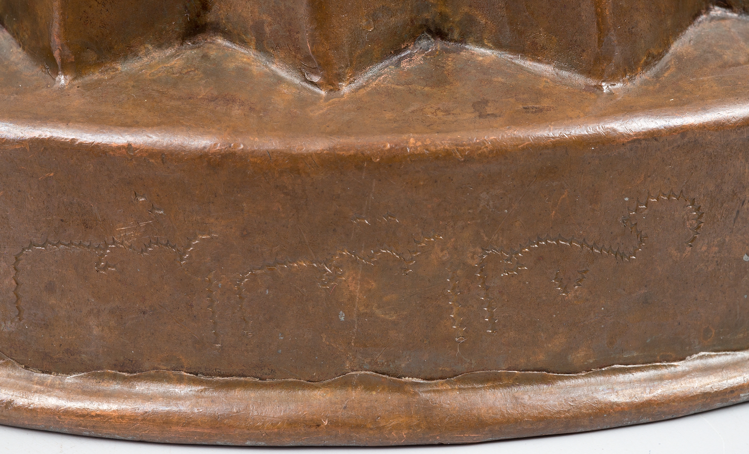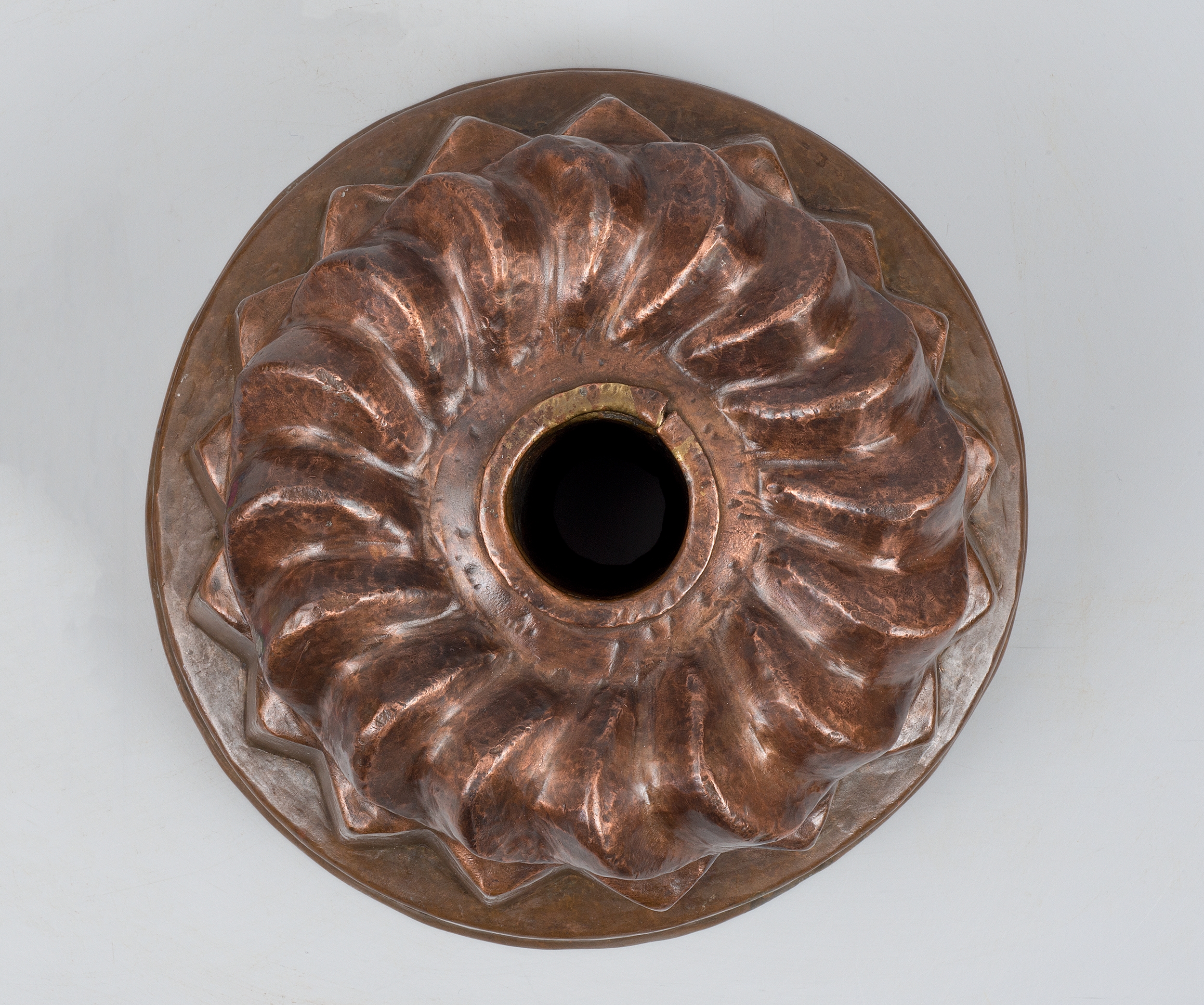Niska forma o stożkowatym kształcie i centralnym kominku. Górną partię zdobi gęsty wieniec ornamentalny. Na krawędzi formy znajduje się napis w języku arabskim. Forma została wykonana z miedzi i pobielona od wewnątrz.