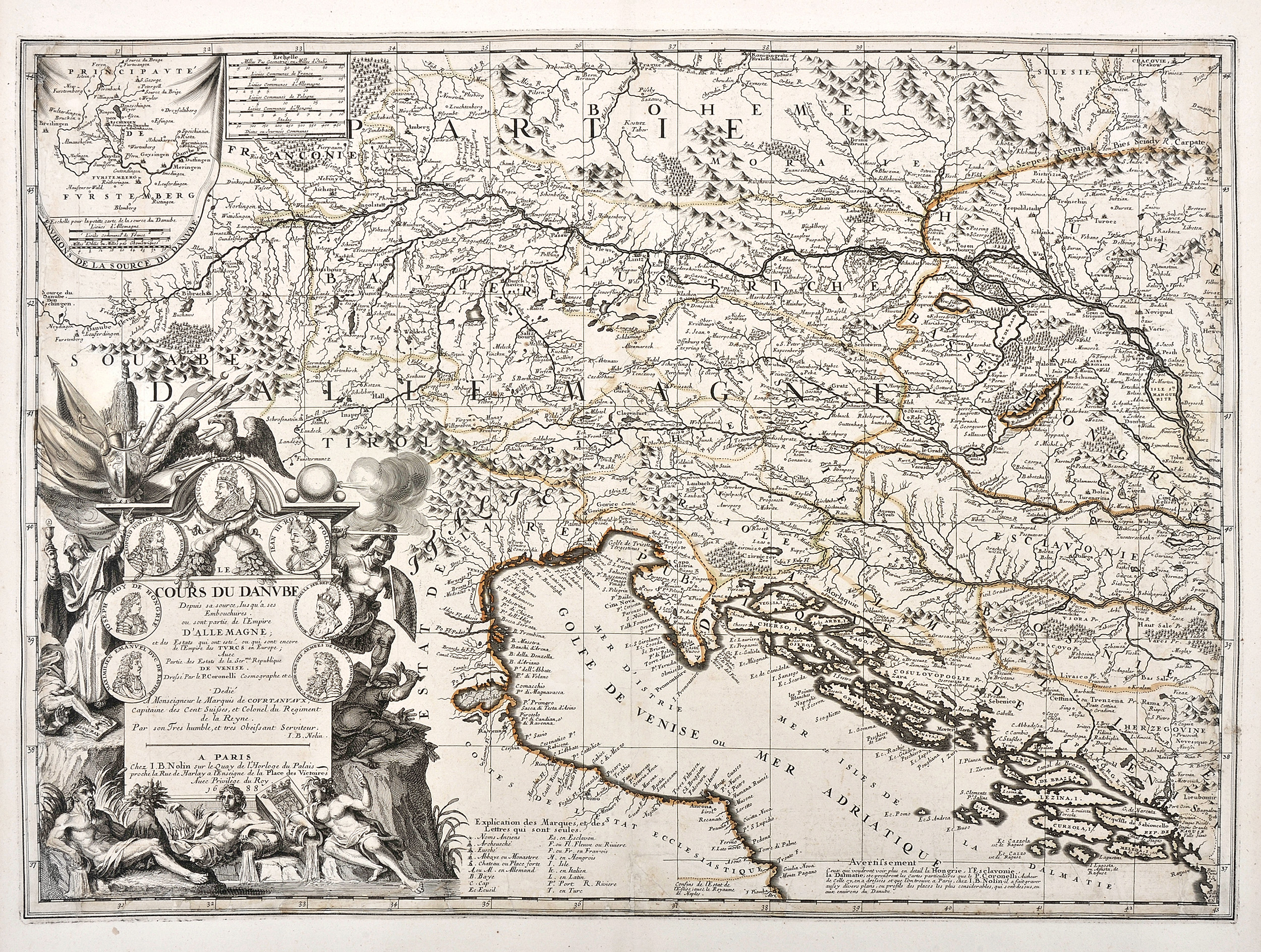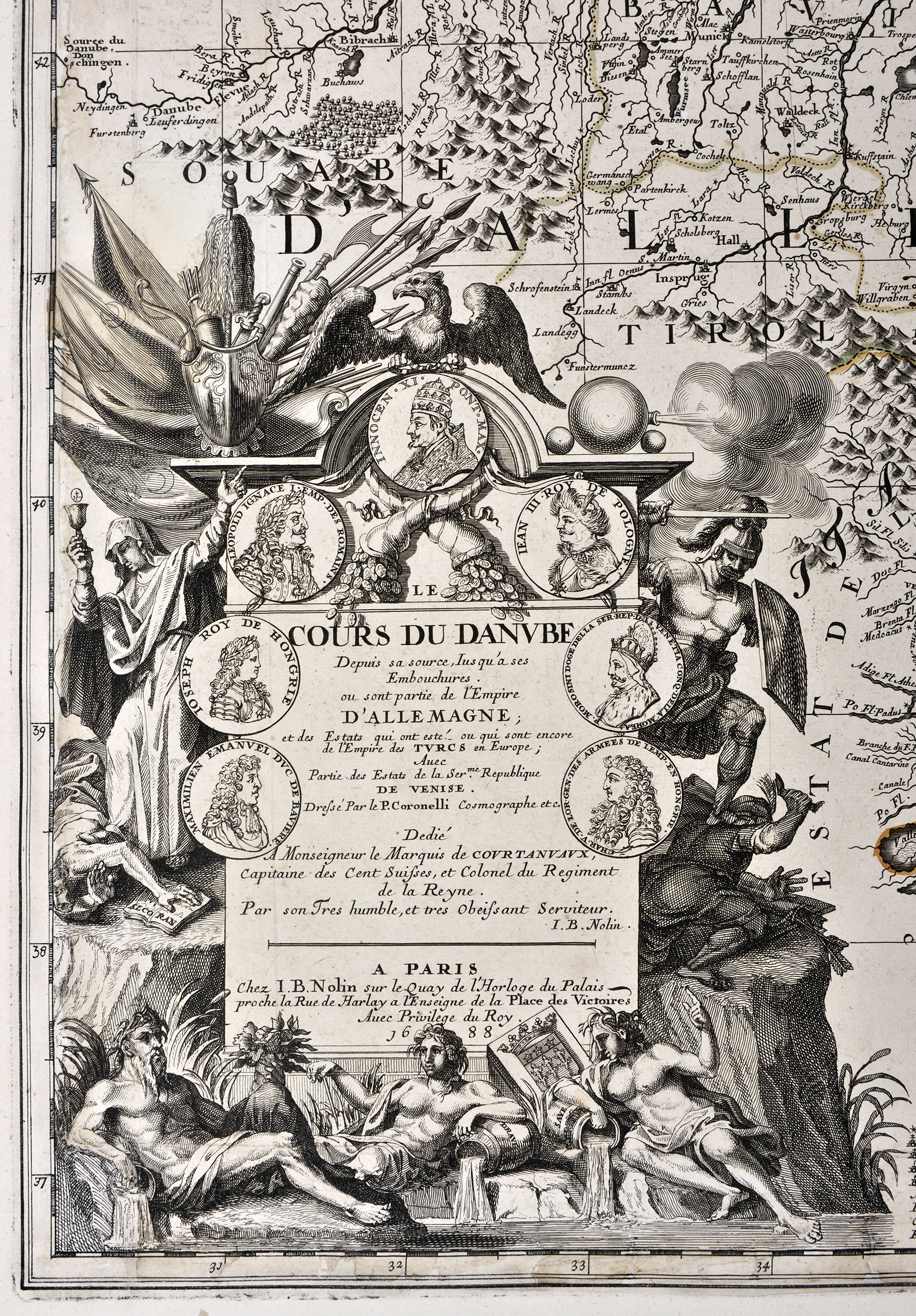 Dunaj, Imperium Ottomańskie, Donaueschingen, Habsburgowie, Rzeczpospolita Obojga Narodów, Republika Wenecka, von Fürstenberg, Accademia Cosmografica degli Argonauti, Jan III, papież Innocenty XI, Liga Święta