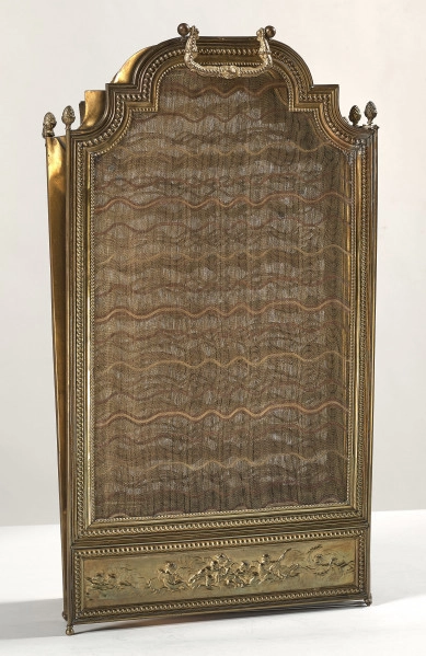 Kominkom, które służyły do ogrzewania pomieszczeń, towarzyszyły przybory kominkowe pełniące dwie funkcje- użytkową i dekoracyjną. W ich skład wchodziły: wilki kominkowe, szczypce, łopatka – szufelka, pogrzebacz, haczyk, miotełka, mieszek do podtrzymywania ognia (zwykle drewniany oprawiony w skórę), stojak na przybory, ekranik kominkowy, blacha przed kominek. Wyroby te podlegały modzie i ich wygląd zmieniał się w zależności od dominującego w danym okresie stylu w sztuce. Większość posiadanych przez Muzeum – Zamek w Łańcucie akcesoriów kominkowych pochodzi z czasu od XVIII wieku do pocz. XX wieku, a wykonane są z mosiądzu, brązu złoconego, stali, powstały zaś głownie Anglii, Francji i Polsce. Parawanik pięcioskrzydłowy z mosiądzu (odlew cyzelowany) i drutu miedzianego składany, wyrób francuski lub angielski z około 1780 roku pochodzi z kolekcji Potockich. Każde ze skrzydeł w kształcie prostokąta zamkniętego u góry fantazyjnym łukiem, u dołu prostokątną z blachy ozdobionym półplastyczną sceną antykizująca z amorków grających na instrumentach muzycznych. Każdy z prostokątów wypełnione drobną siatką, o wzorze falisty linii z drutu miedzianego i mosiężnego. Każde skrzydło profilowane i ozdobione wzdłuż krawędzi ornamentem perełkowym, który obejmuje też dolne fragmenty z amorkami. Skrzydła łączone za pomocą prętów zakończonych sterczynką w formie żołędzia. Na skrajnych skrzydłach zamontowane uchwyty do przenoszenia parawanika w kształcie antabek, rewers parawanika gładki.