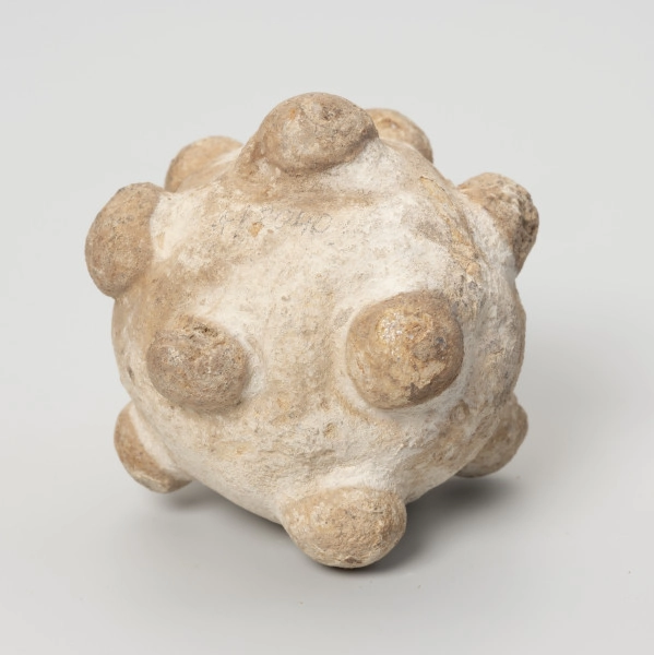 Białą, okrągłą grzechotkę glinianą z półkolistymi guzkami i pojedynczym kamyczkiem w środku złożono do grobu zmarłego dziecka, wraz z innymi przedmiotami, poniżej jego stóp. Grób został odkryty na cmentarzysku wczesnośredniowiecznym w Cedyni i datowany jest na okres od końca X po wiek XI.