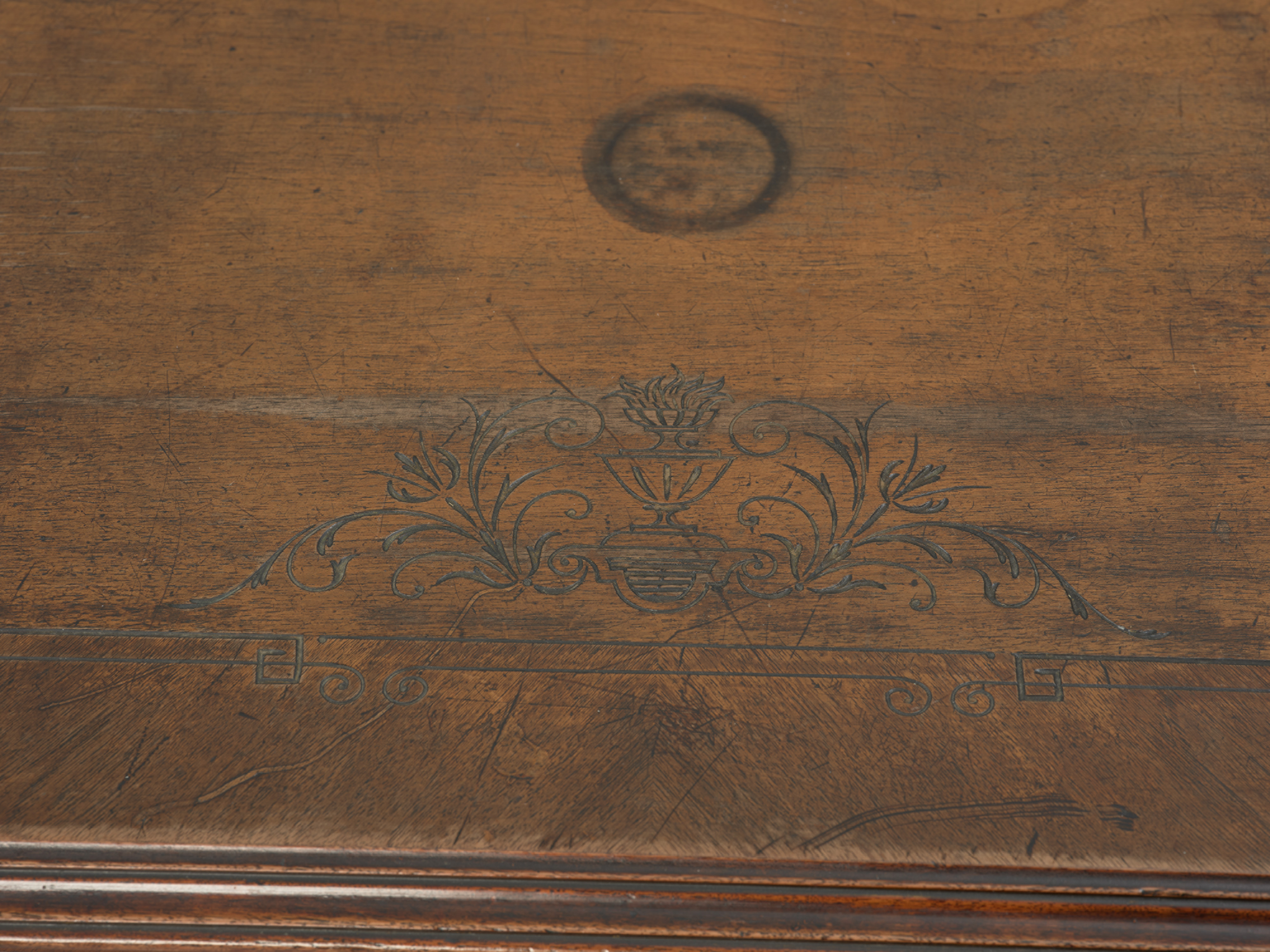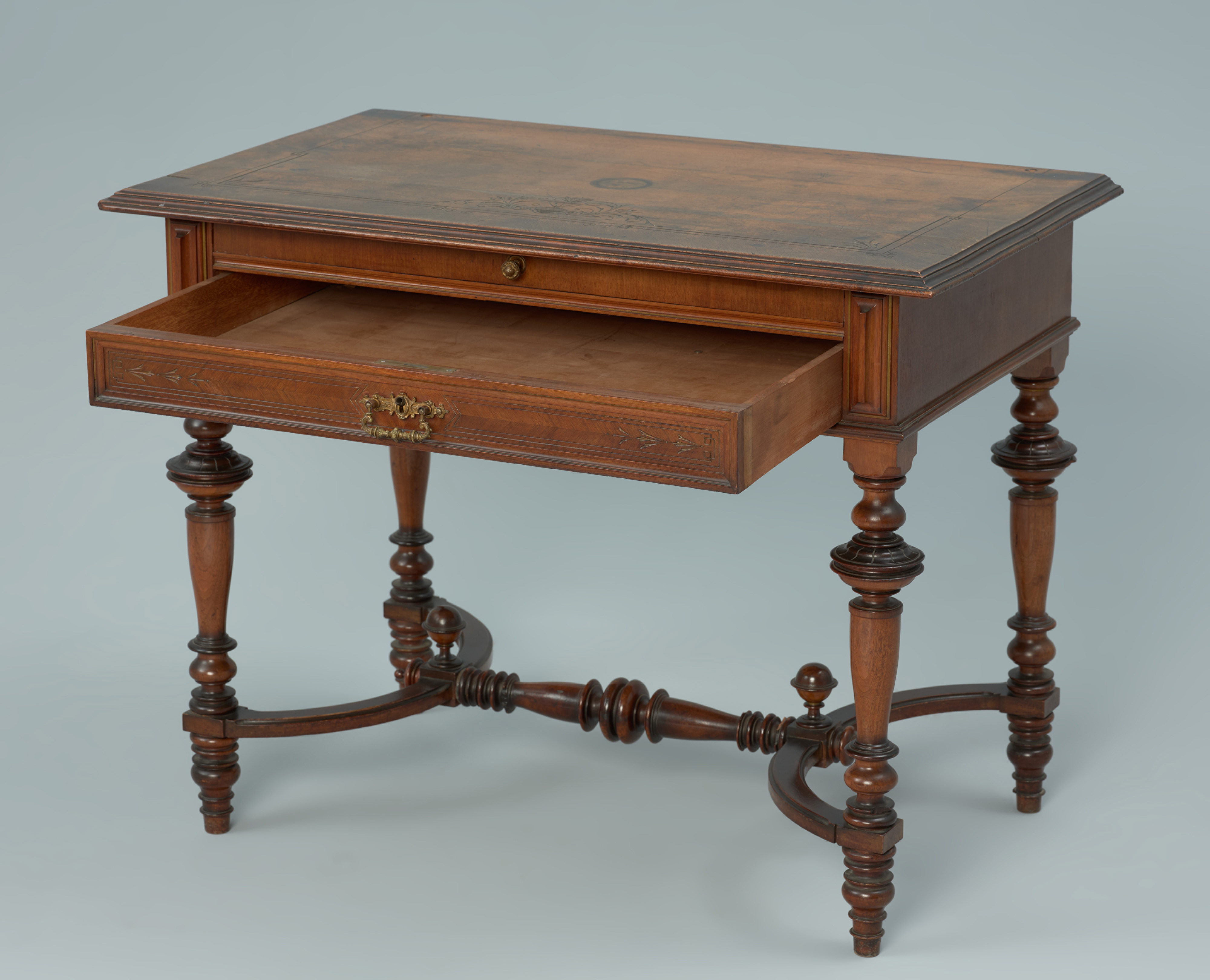 Biurko pochodzi z prywatnego mieszkania Janiny Szczerskiej (ur. 22 października 1897 w Stryju, zm. 10 lipca 1981 w Szczecinie), organizatorki i dyrektorki pierwszej szkoły ogólnokształcącej w Szczecinie. Wraz z innymi przedmiotami osobistymi zostało przekazane do zbiorów Muzeum Narodowego w Szczecinie na podstawie zapisu testamentowego sporządzonego 1 września 1976 roku. Meble tego rodzaju powstały z połączenia stołu i komody w 2. połowie XVII stulecia we Francji. Najbardziej popularną odmianą biurka był sekretarzyk z wieloma szufladami na koperty, papier i różne przybory do pisania, często zamykany żaluzją albo prostą lub bębnową pokrywą. Dodatkowo zaopatrzony był również w pochyły pulpit przeznaczony do pisania na stojąco. Biurko i jego wygląd ewaluowały wraz ze stylem epoki. Z czasem modne stały się masywne biurka z blatem obciągniętym na przykład skórą, rzeźbione, z licznymi ozdobami. W XIX wieku stanowiły najważniejszy element dekoracyjny pokojów do pracy, a już pod koniec lat 40. XX były niezbędnym wyposażeniem licznie powstających biur.