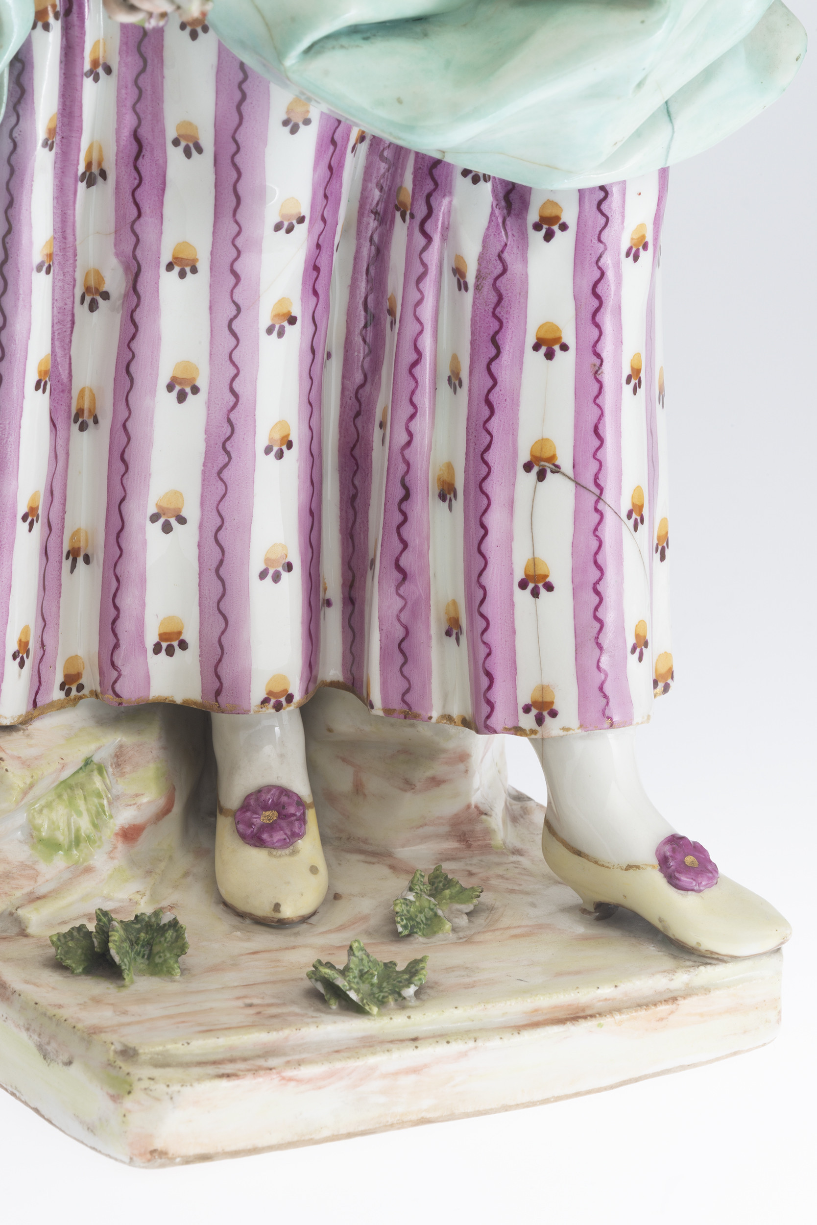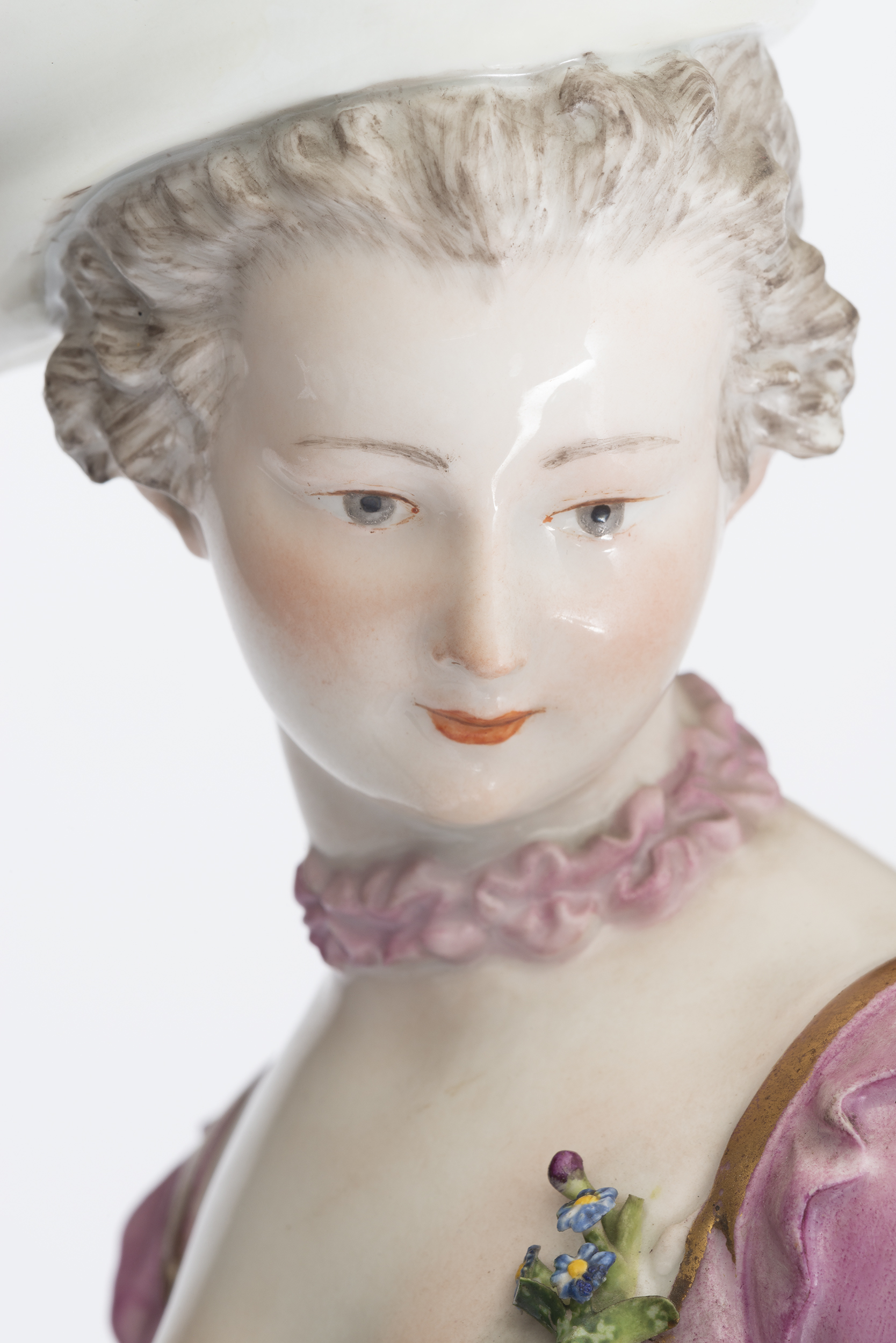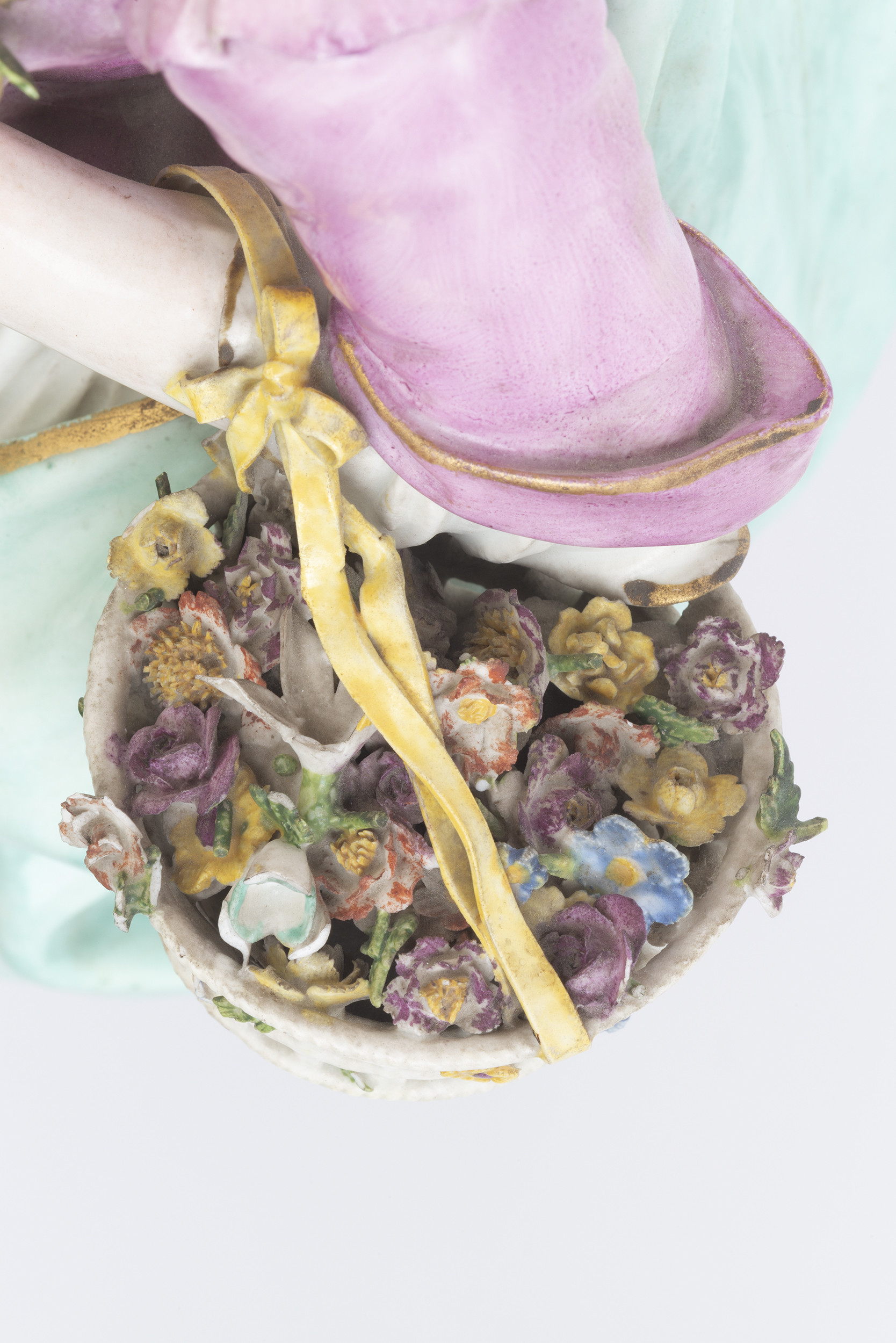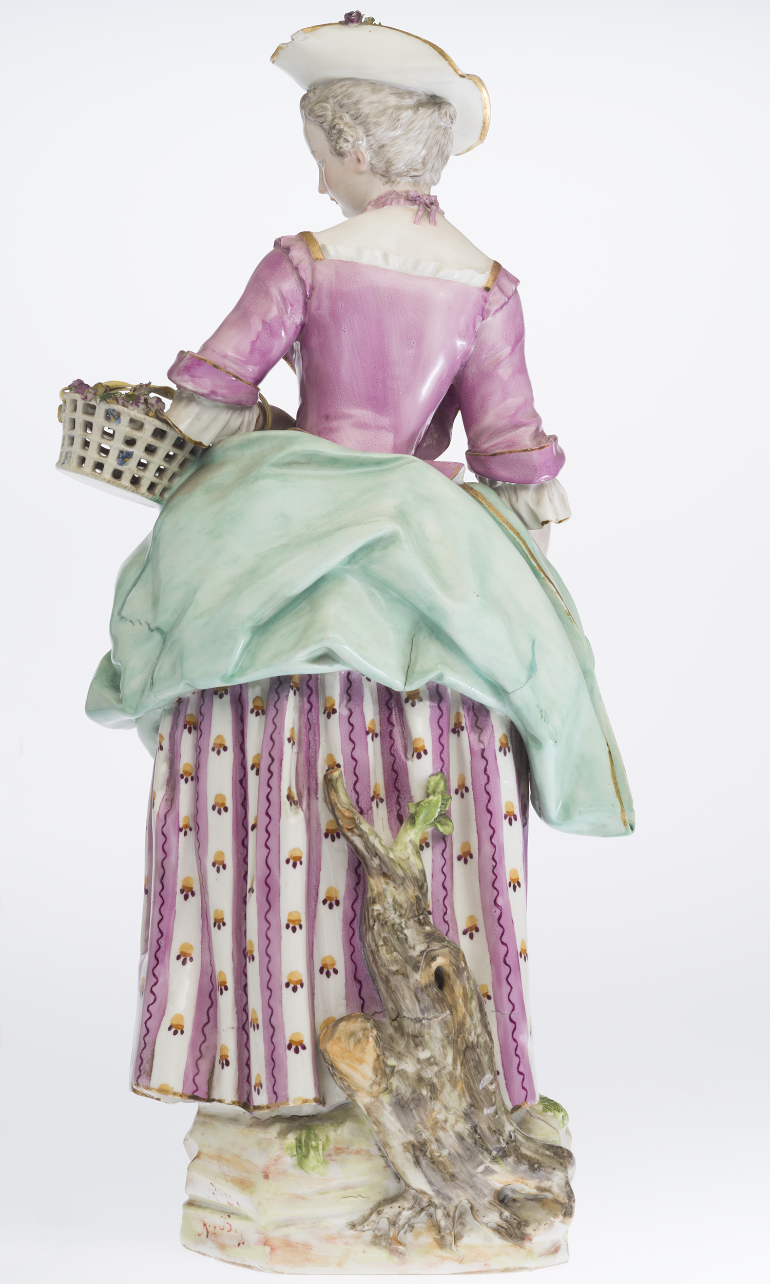 Figurka nazywana kwiaciarką czy też ogrodniczką stanowi rzadki przykład przedmiotu, którego historia związana z pałacem wilanowskim jest dokładnie udokumentowana. Pełną wdzięku postać zakupił w 1800 roku Stanisław Kostka Potocki. Nowy właściciel pałacu wilanowskiego chciał uzupełnić jego wyposażenie uszczuplone po wyprowadzce poprzedniej właścicielki i jego teściowej Izabeli Lubomirskiej, która zabrała wiele swoich przedmiotów do Łańcuta. Figurę, wraz ze stanowiącym do niej parę ogrodnikiem, udało mu się wylicytować, o czym świadczy zapis w jego "Pamiętniku Interessów": „Kupna na Tandecie po Rogalińskim ... 4 Figury Porcelany Saskiey do Wilanowa f 120”. Swoje działania opisuje także w liście do żony z 2 października 1800 roku: „Kupiłem także ze trzy figlów z porcelany saskiey za bezcen, nie ładnych, mais tels qu’ils faut pour remplacer ces qui sontpassé de Wilanów a Łańcut [lecz takich, których trzeba, aby zastąpiły te, które przeszły z Wilanowa do Łańcuta]”. „Nikt ich nie licytował tylko ja i Niemcy, je crains qu’un grand berger et sa tendre compagne ne m’echappent [boję się, że wielki pasterz i jego czuła towarzyszka uciekną mi], bo się w nich szalenie jeden Prusak zakochał, są to machiny wielkie, propres a remplacer [mogące zastąpić] ów wiatrak z Porcelany a nawet y św. Jana...”