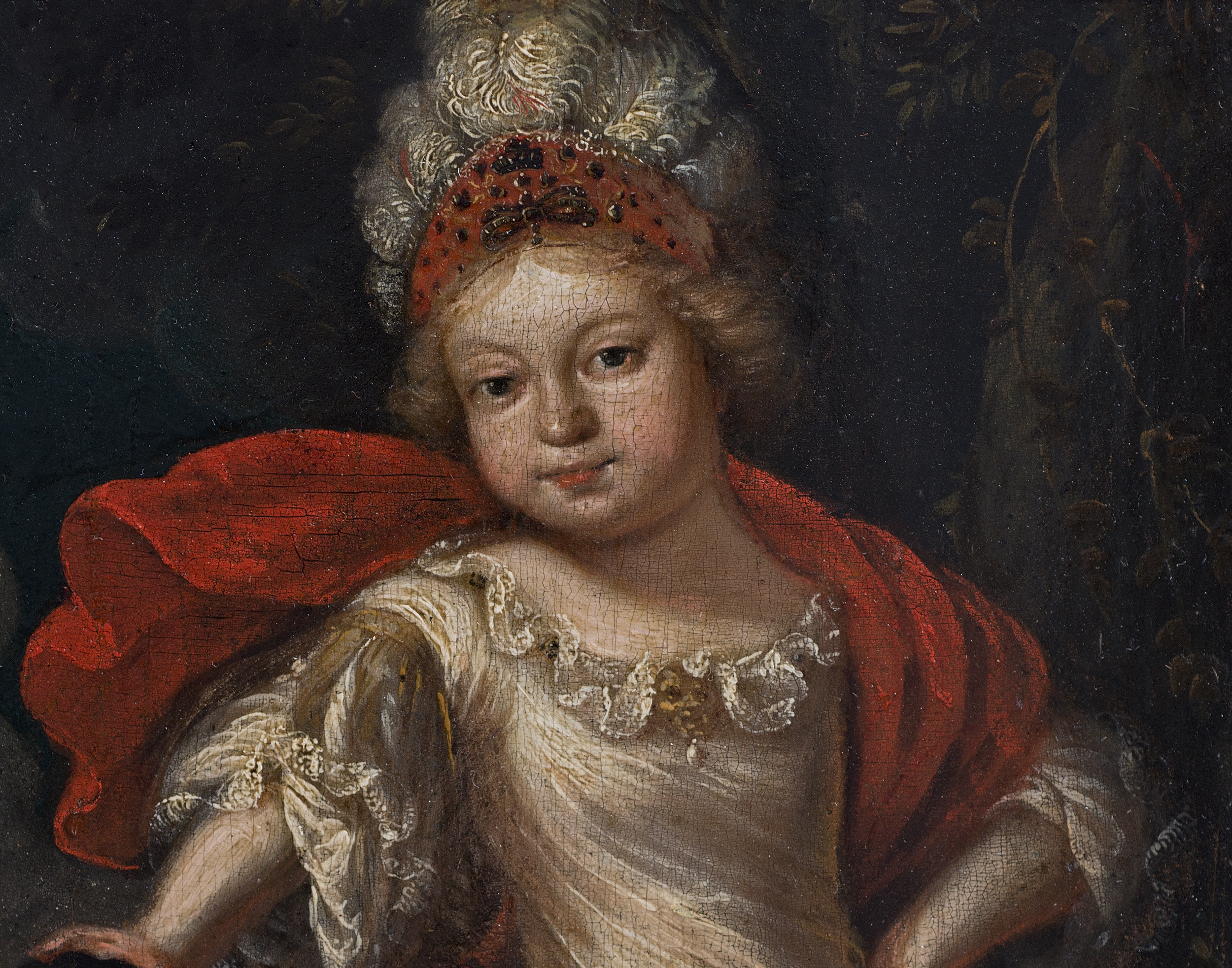 Nieznany malarz dworski przedstawił na niniejszym obrazie małego formatu, namalowanym na desce, królewicza polskiego Konstantego Władysława Sobieskiego (1680-1726), syna Jana III (1629-1696) z rodu Sobieskich i królewskiej małżonki Marii Kazimiery z domu de la Grange d’Arquien zwanej „Marysieńką” (1641-1716), urodzonego 1 maja 1680 r. w Warszawie.