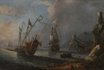 Pejzaż morski z grupą statków